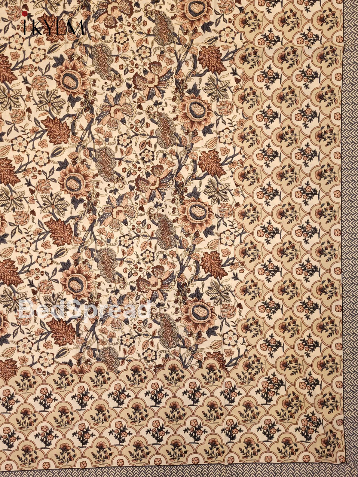 Cream and Blue - Bed Spread