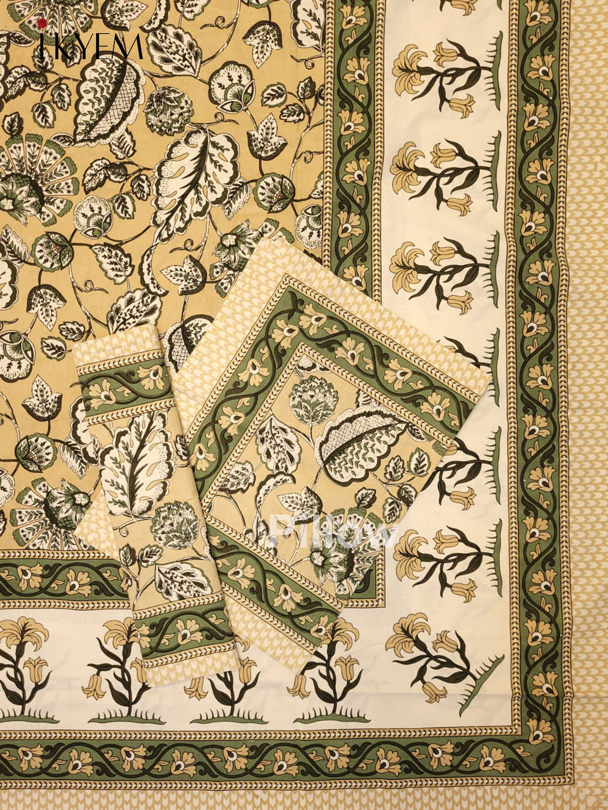 Experience the pinnacle of comfort and elegance with our Cream & Yellow Jaipuri Printed Bedspread, complete with two matching pillow covers. Adorned with stunning floral designs and vibrant hues, this bedspread is crafted from high-quality cotton for the ultimate combination of style and coziness