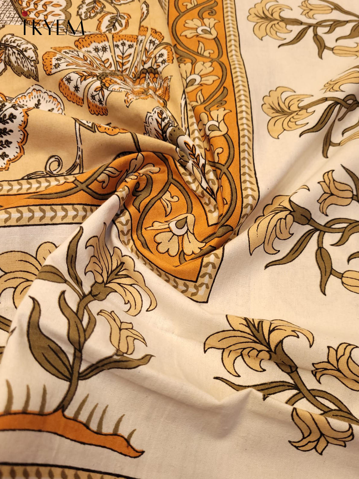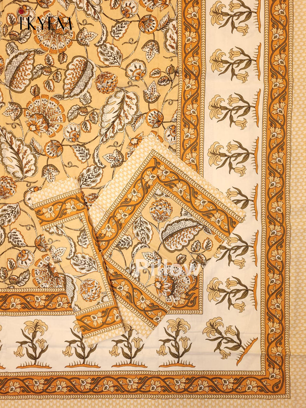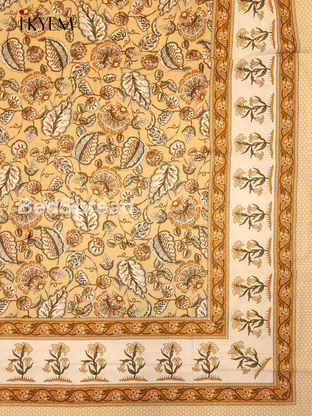 Experience the pinnacle of comfort and elegance with our Cream & Orange Jaipuri Printed Bedspread, complete with two matching pillow covers. Adorned with stunning floral designs and vibrant hues, this bedspread is crafted from high-quality cotton for the ultimate combination of style and coziness