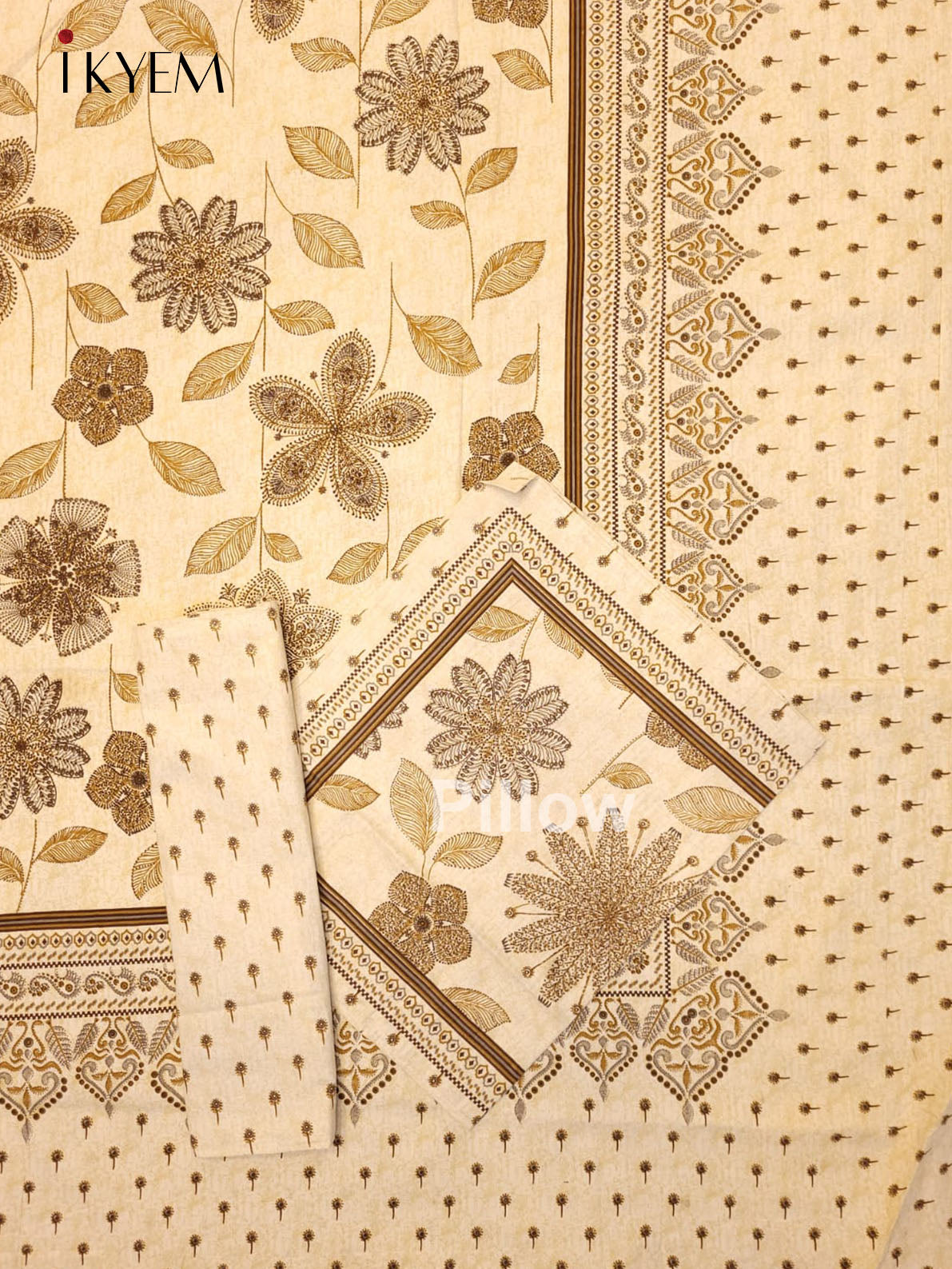 Experience the pinnacle of comfort and elegance with our  Cream & Brown Jaipuri Printed Bedspread, complete with two matching pillow covers. Adorned with stunning floral designs and vibrant hues, this bedspread is crafted from high-quality cotton for the ultimate combination of style and coziness