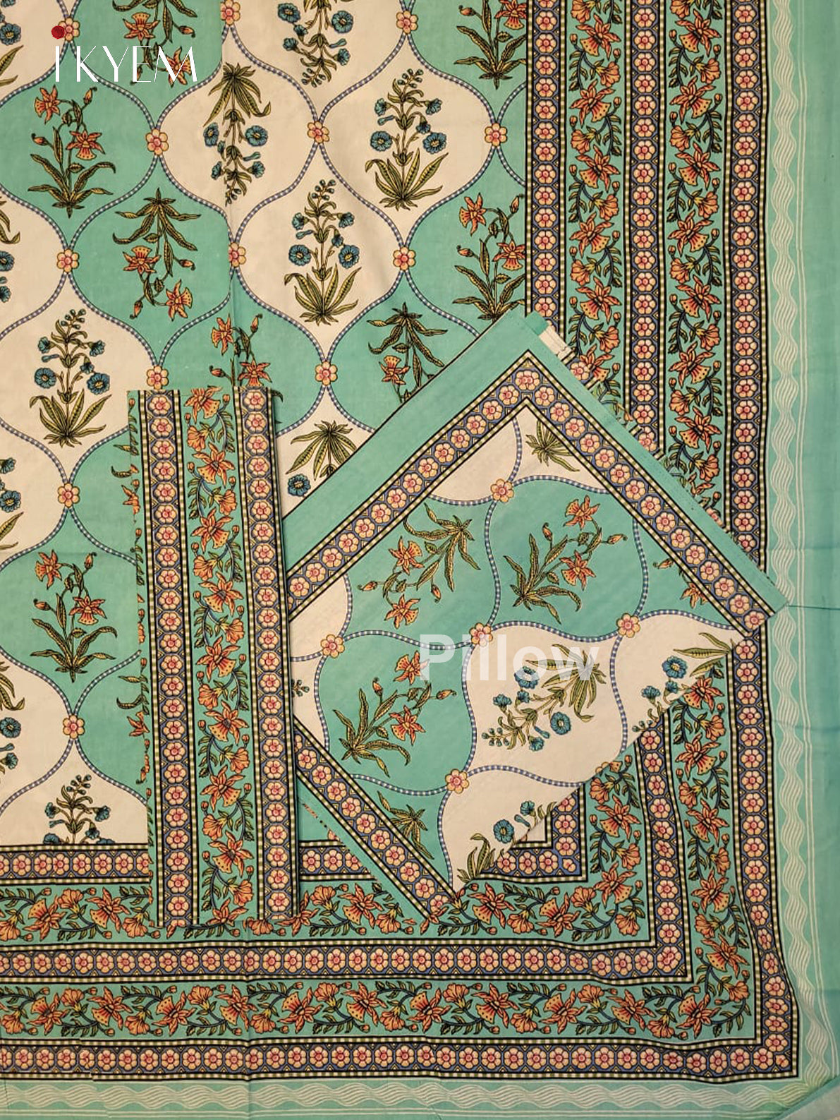 Experience the pinnacle of comfort and elegance with our Blue & Cream Jaipuri Printed Bedspread, complete with two matching pillow covers. Adorned with stunning floral designs and vibrant hues, this bedspread is crafted from high-quality cotton for the ultimate combination of style and coziness