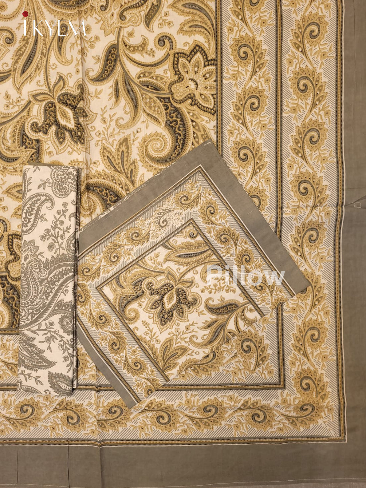 Experience the pinnacle of comfort and elegance with our  Grey & Cream Jaipuri Printed Bedspread, complete with two matching pillow covers. Adorned with stunning floral designs and vibrant hues, this bedspread is crafted from high-quality cotton for the ultimate combination of style and coziness
