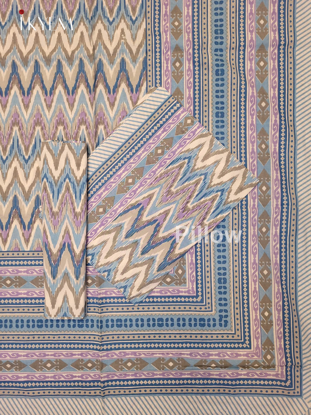Experience the pinnacle of comfort and elegance with our Cream & Blue Jaipuri Printed Bedspread, complete with two matching pillow covers. Adorned with stunning floral designs and vibrant hues, this bedspread is crafted from high-quality cotton for the ultimate combination of style and coziness