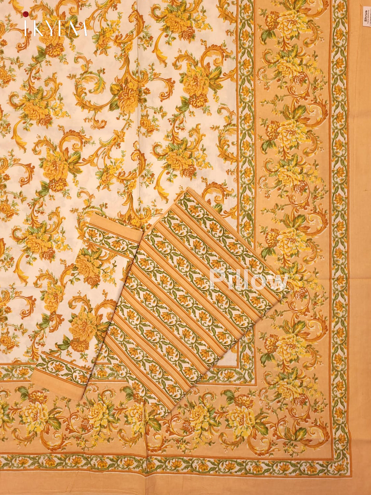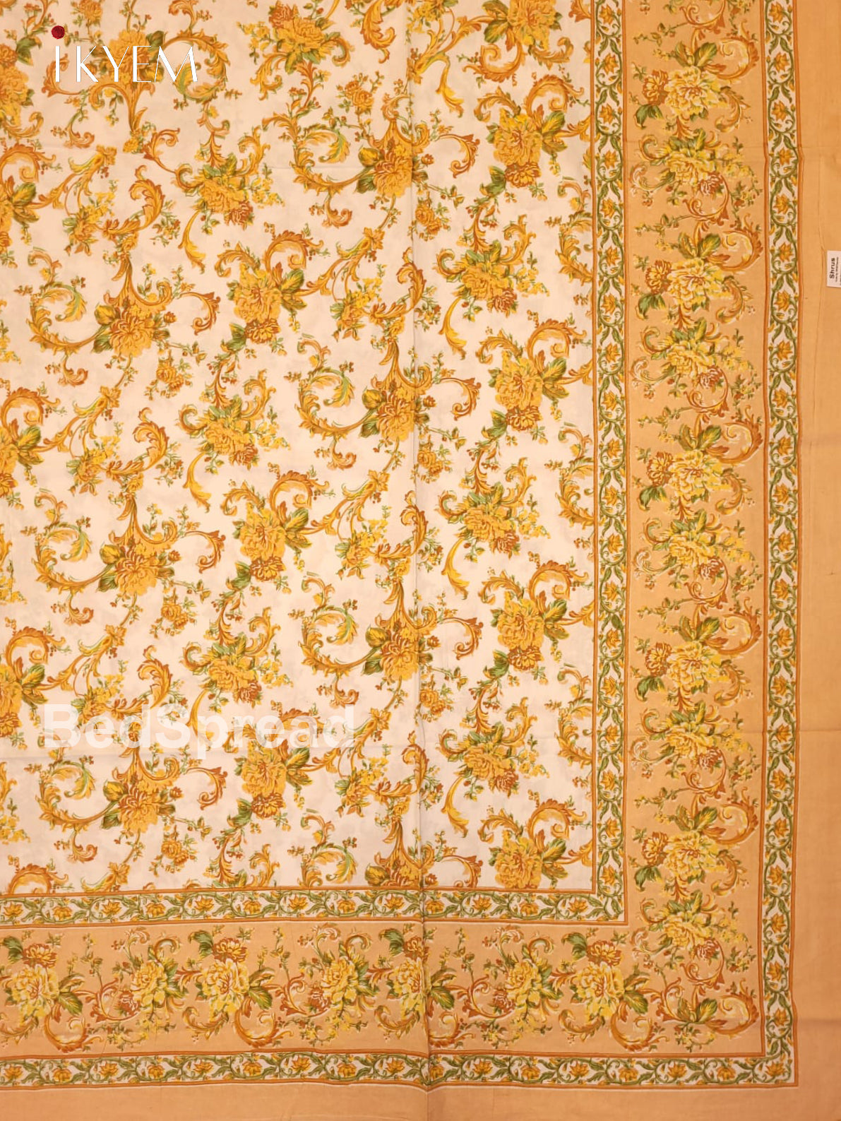 Experience the pinnacle of comfort and elegance with our Cream & Peach Jaipuri Printed Bedspread, complete with two matching pillow covers. Adorned with stunning floral designs and vibrant hues, this bedspread is crafted from high-quality cotton for the ultimate combination of style and coziness