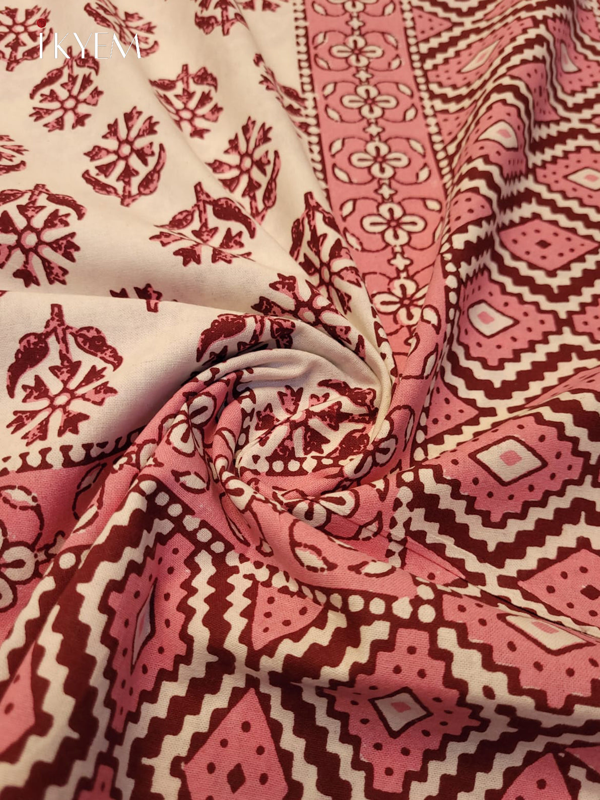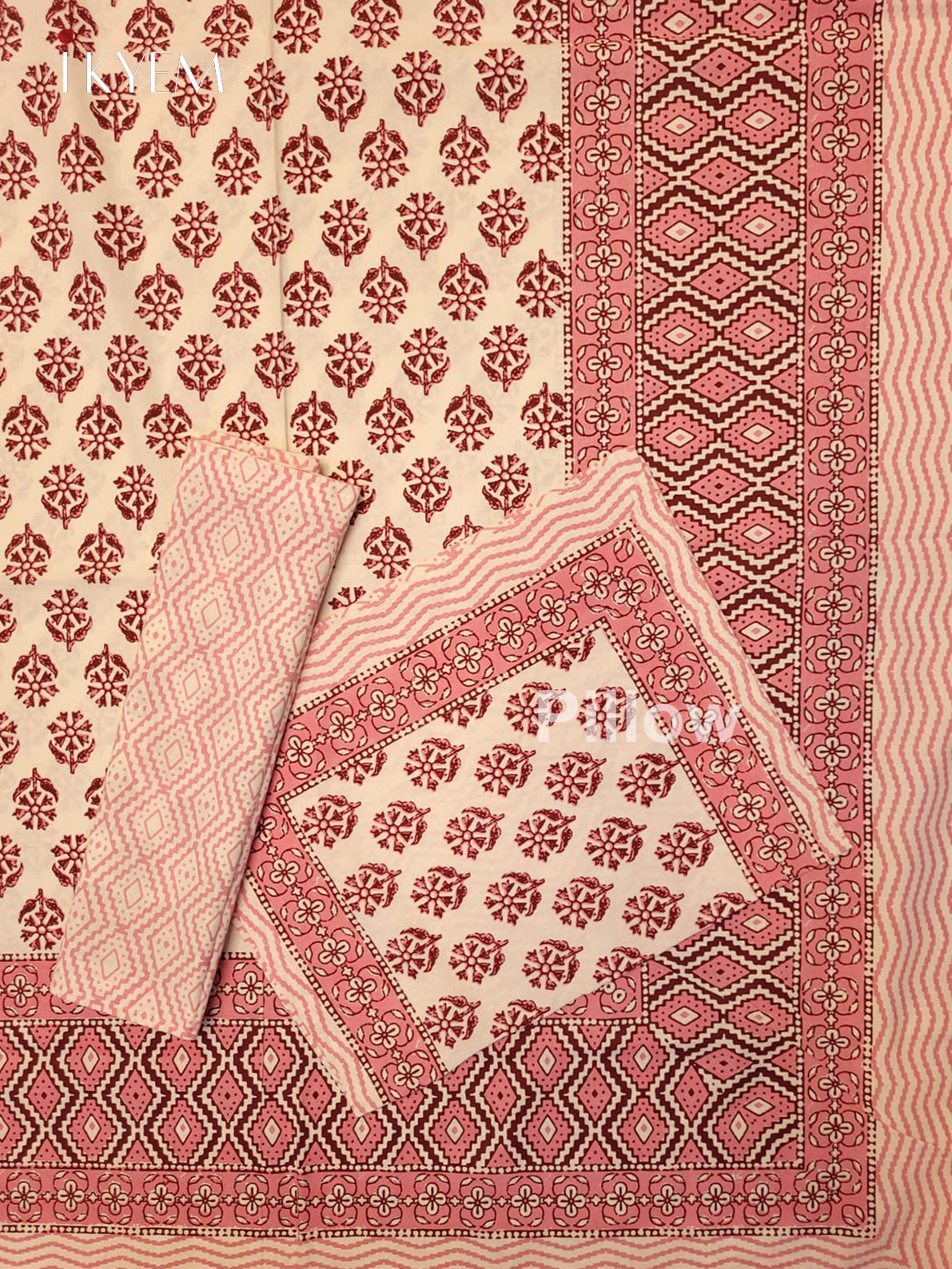 Experience the pinnacle of comfort and elegance with our  Cream & Pink Jaipuri Printed Bedspread, complete with two matching pillow covers. Adorned with stunning floral designs and vibrant hues, this bedspread is crafted from high-quality cotton for the ultimate combination of style and coziness