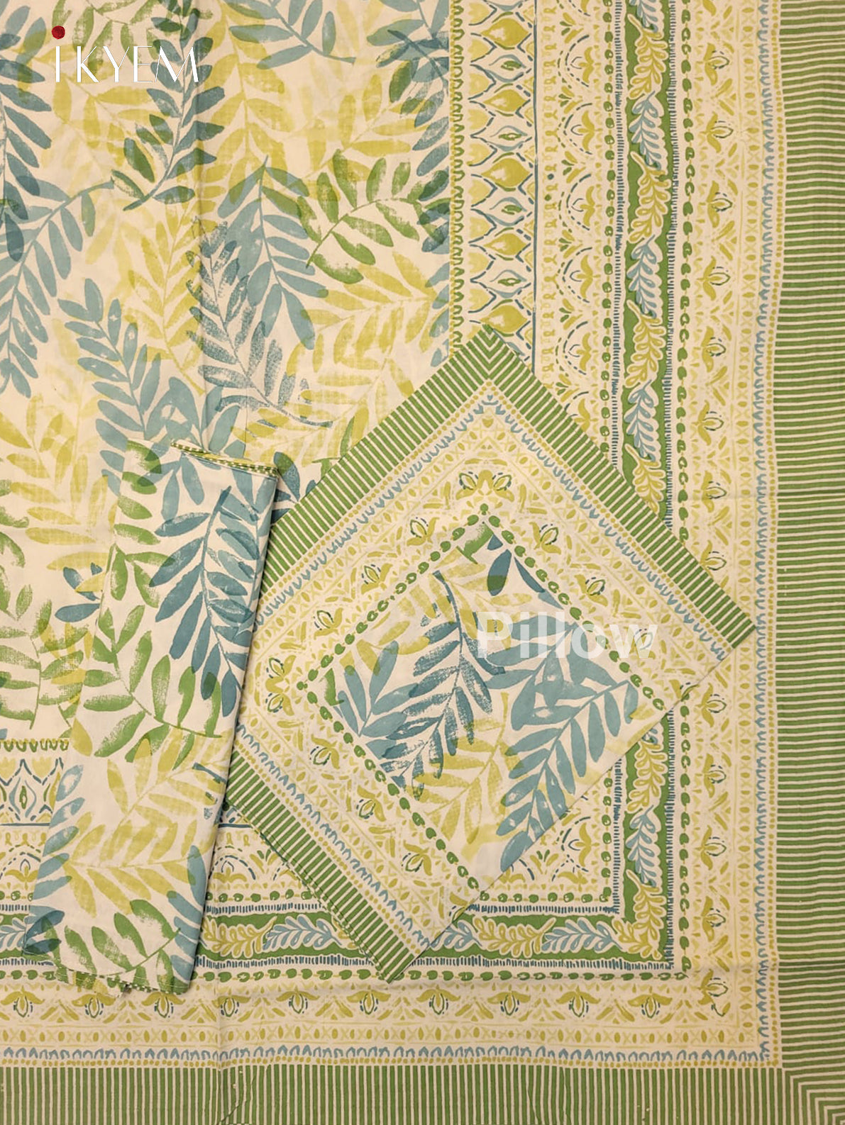 Experience the pinnacle of comfort and elegance with our Cream & Blue Jaipuri Printed Bedspread, complete with two matching pillow covers. Adorned with stunning floral designs and vibrant hues, this bedspread is crafted from high-quality cotton for the ultimate combination of style and coziness