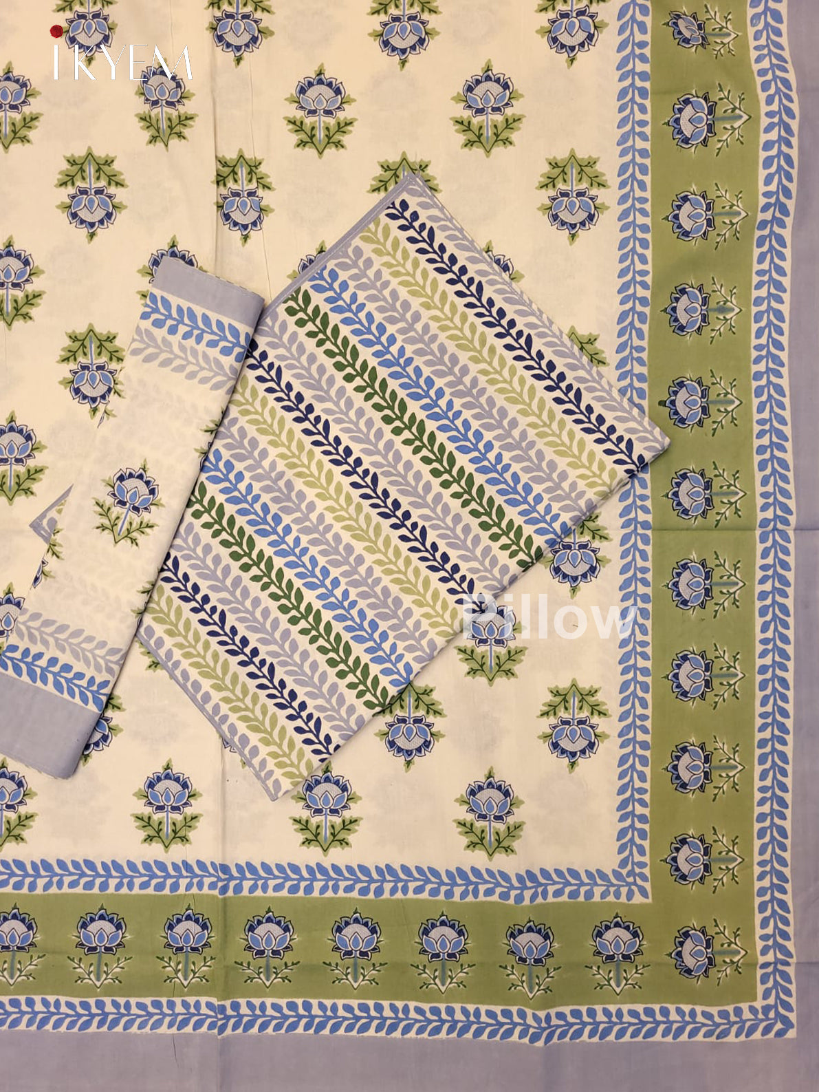 Experience the pinnacle of comfort and elegance with our Cream & Green Jaipuri Printed Bedspread, complete with two matching pillow covers. Adorned with stunning floral designs and vibrant hues, this bedspread is crafted from high-quality cotton for the ultimate combination of style and coziness