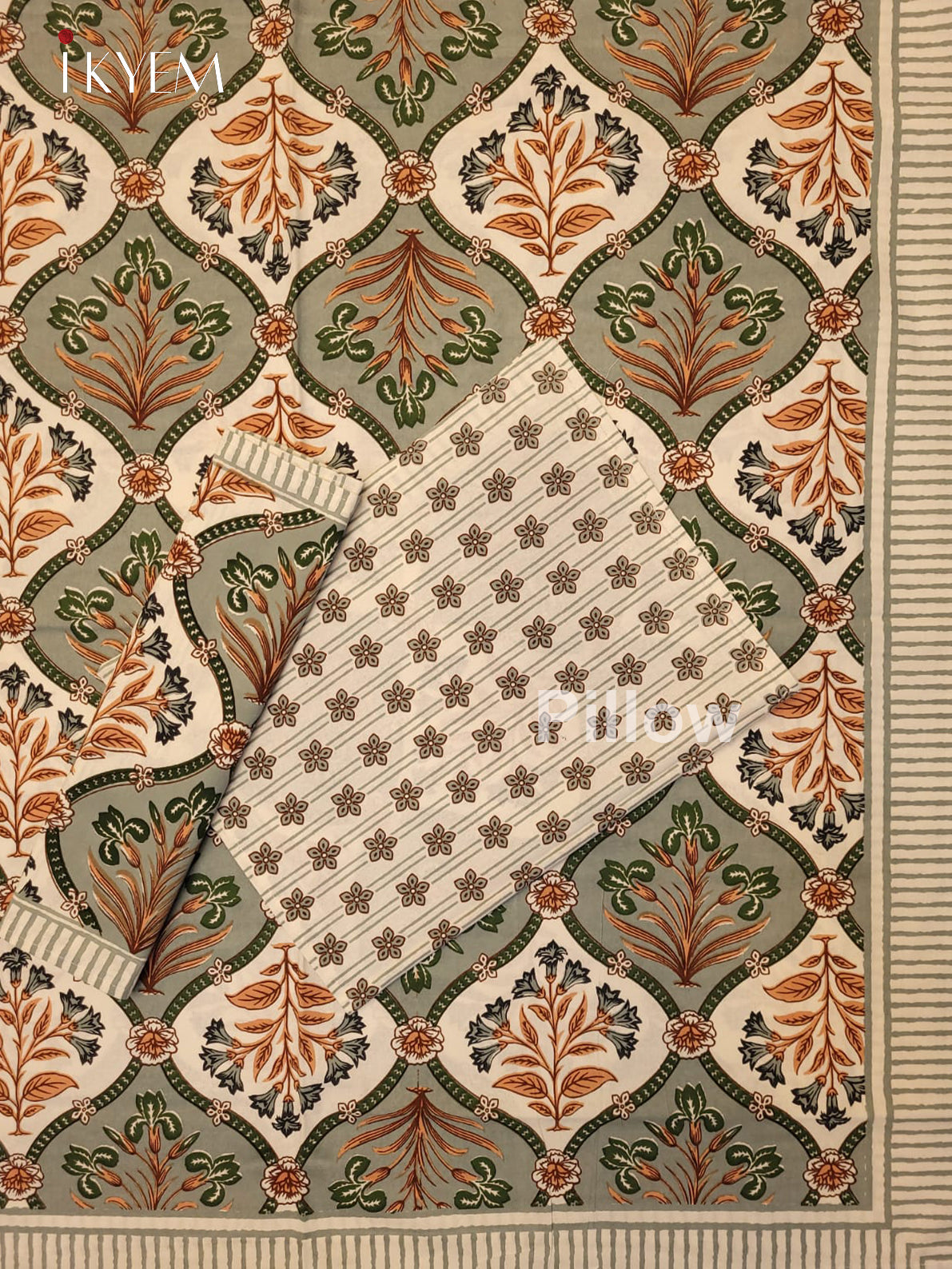 Experience the pinnacle of comfort and elegance with our Grey & Cream Jaipuri Printed Bedspread, complete with two matching pillow covers. Adorned with stunning floral designs and vibrant hues, this bedspread is crafted from high-quality cotton for the ultimate combination of style and coziness