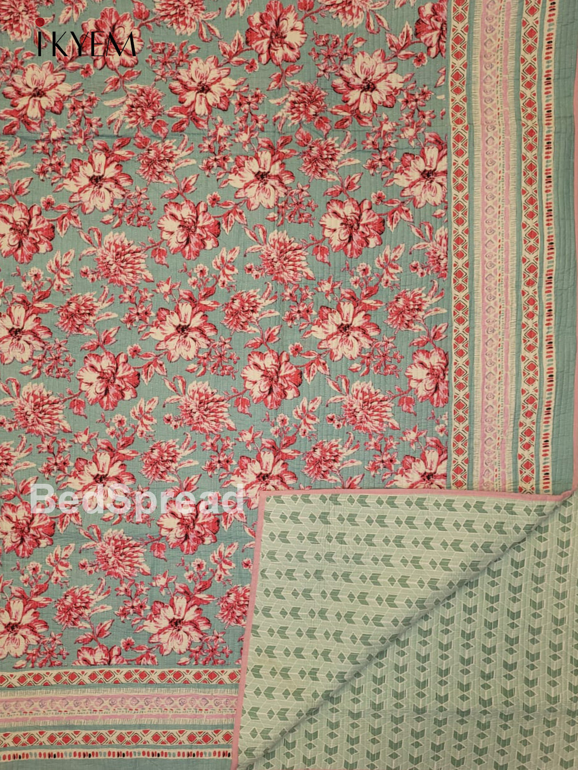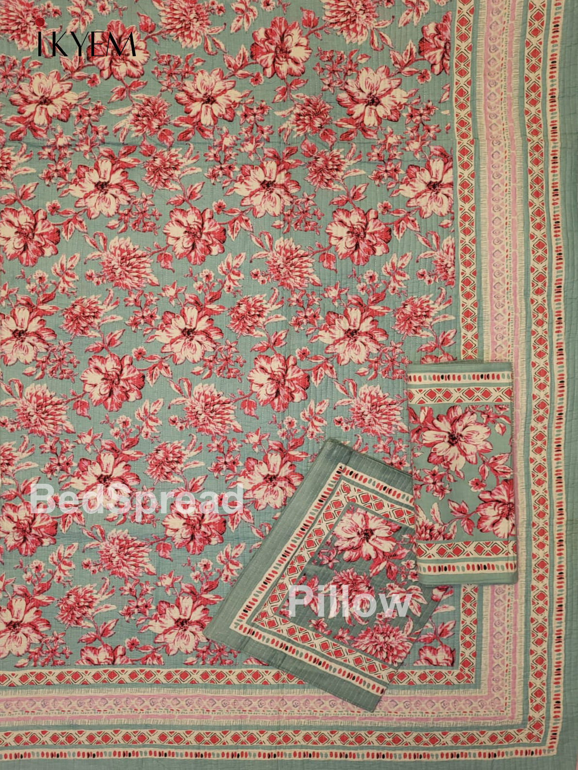 Elegant Blue & Pink Printed Bedspread, complete with two matching pillow covers. Adorned with stunning floral designs and vibrant hues, this bedspread is crafted from high-quality cotton for the ultimate combination of style and coziness