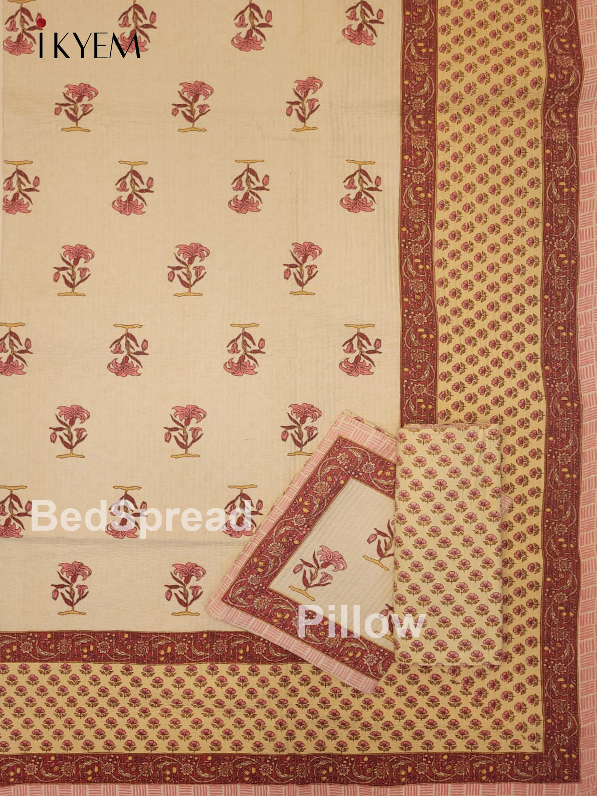 Very Pretty Cream & Pink Printed Bedspread, complete with two matching pillow covers. Adorned with stunning floral designs and vibrant hues, this bedspread is crafted from high-quality cotton for the ultimate combination of style and coziness