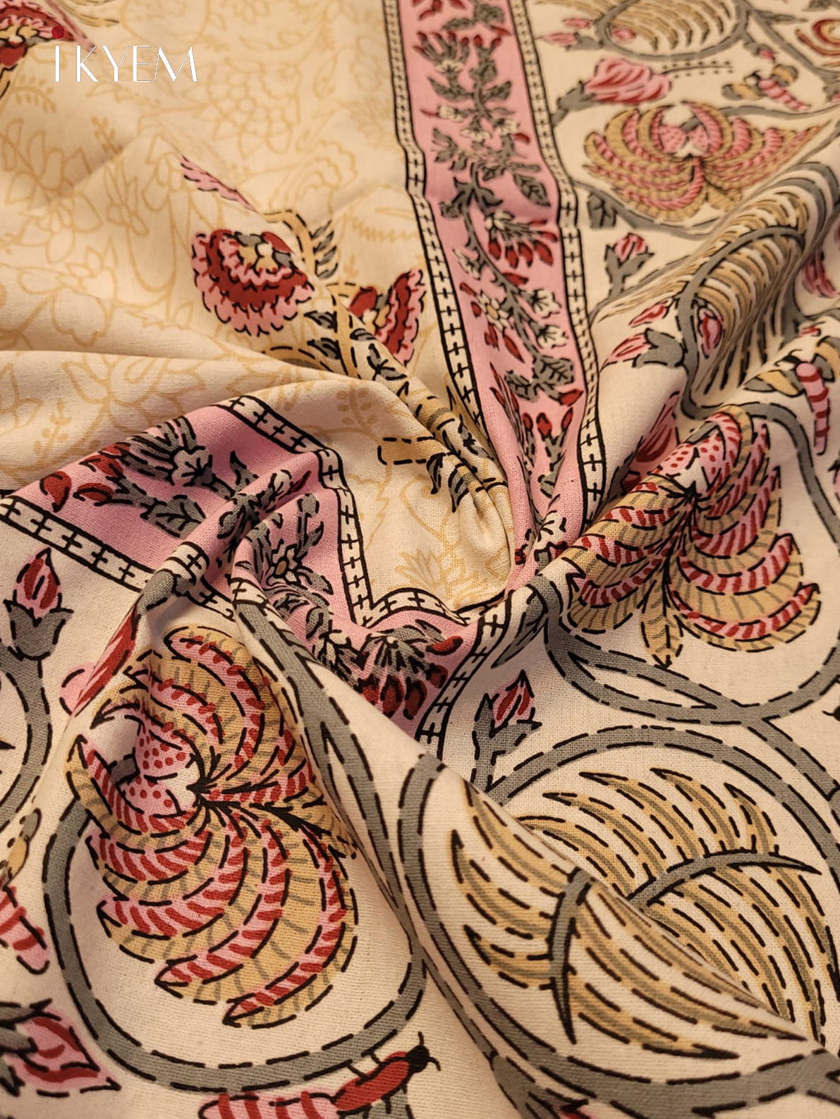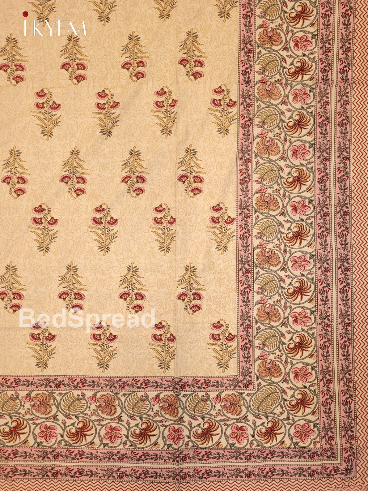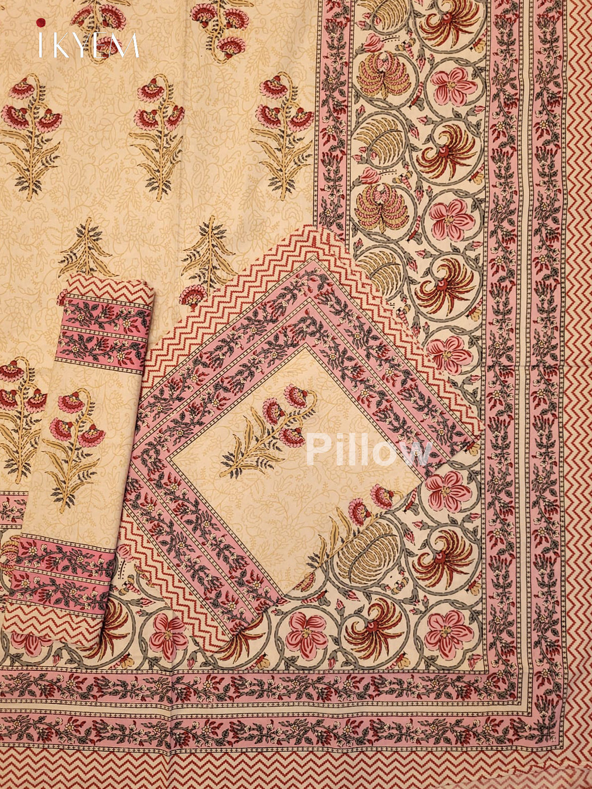 Experience the pinnacle of comfort and elegance with our  Cream & Pink  Jaipuri Printed Bedspread, complete with two matching pillow covers. Adorned with stunning floral designs and vibrant hues, this bedspread is crafted from high-quality cotton for the ultimate combination of style and coziness