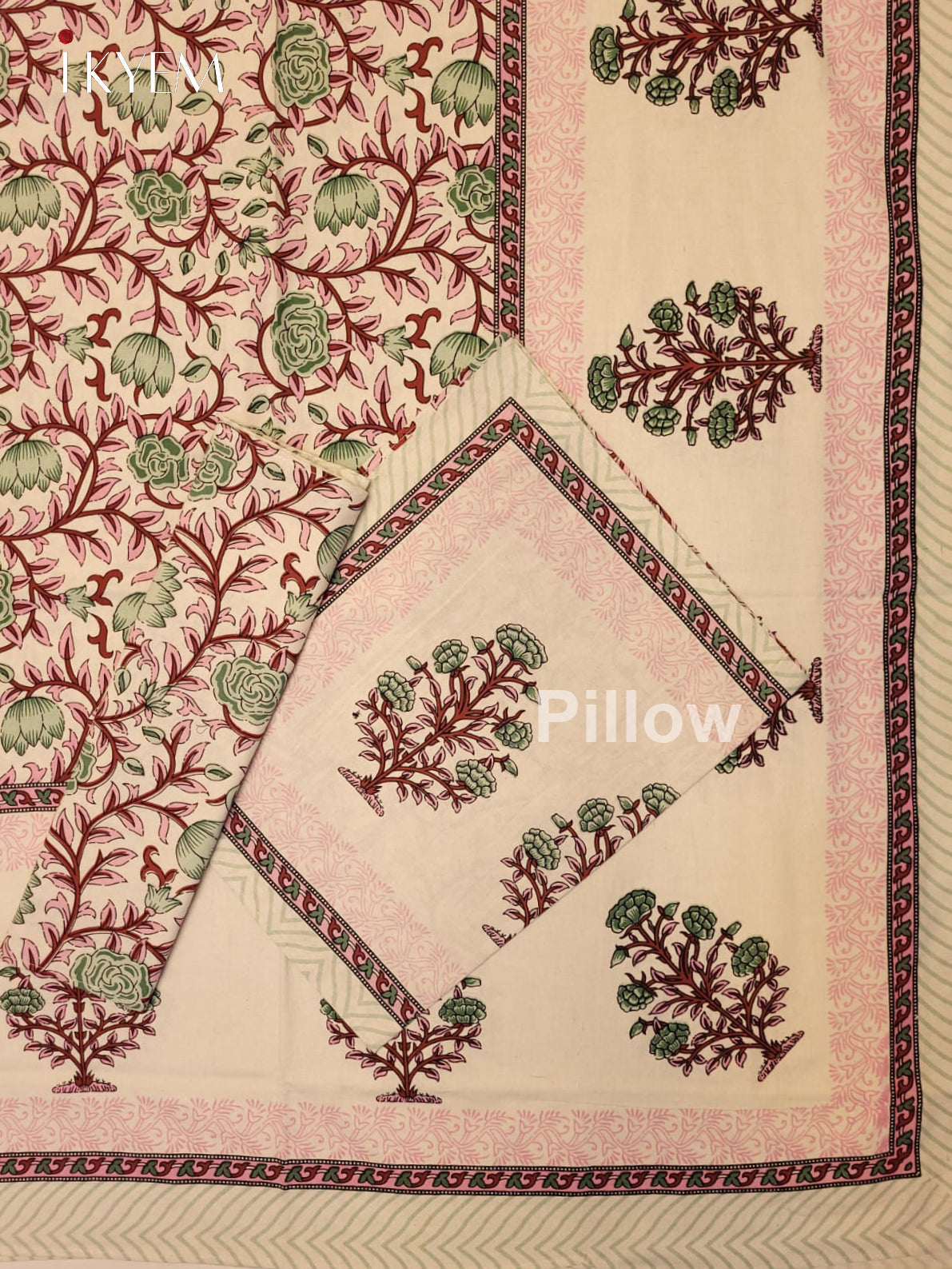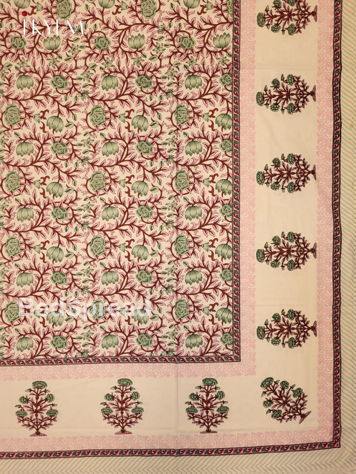 Experience the pinnacle of comfort and elegance with our Cream & Pink Jaipuri Printed Bedspread, complete with two matching pillow covers. Adorned with stunning floral designs and vibrant hues, this bedspread is crafted from high-quality cotton for the ultimate combination of style and coziness