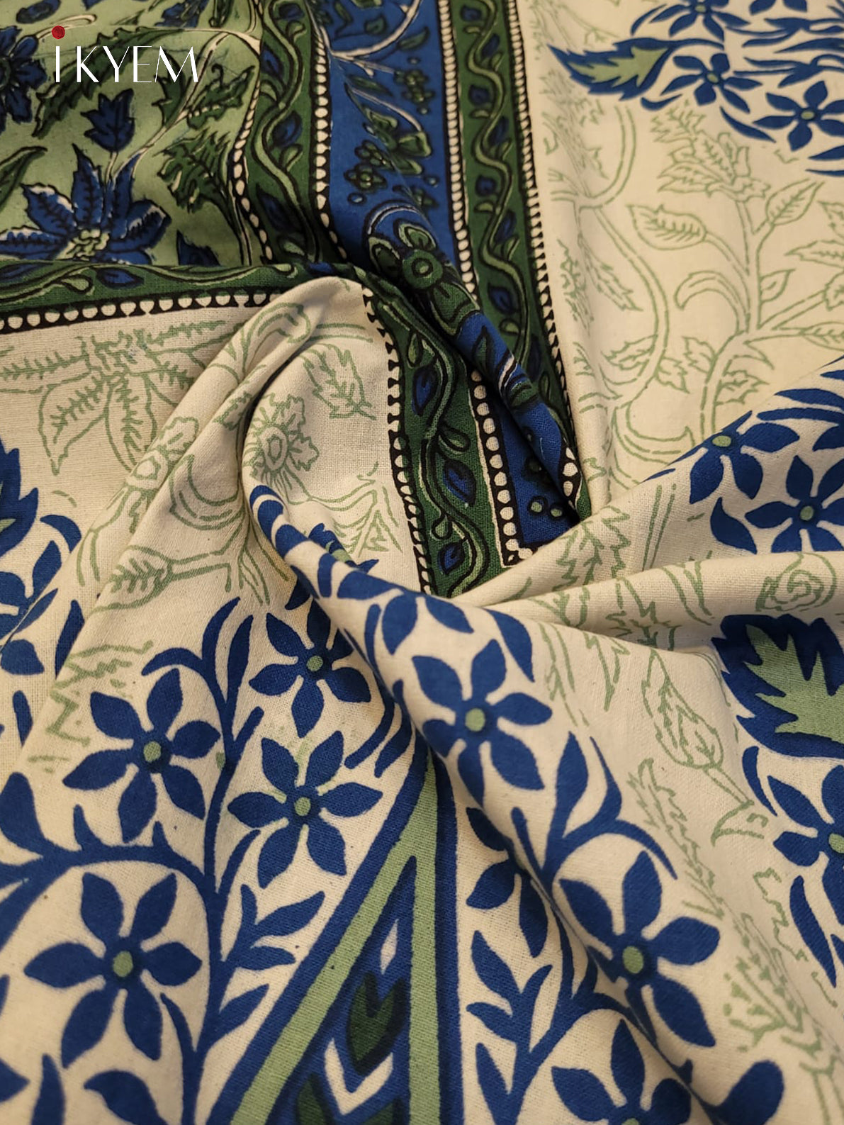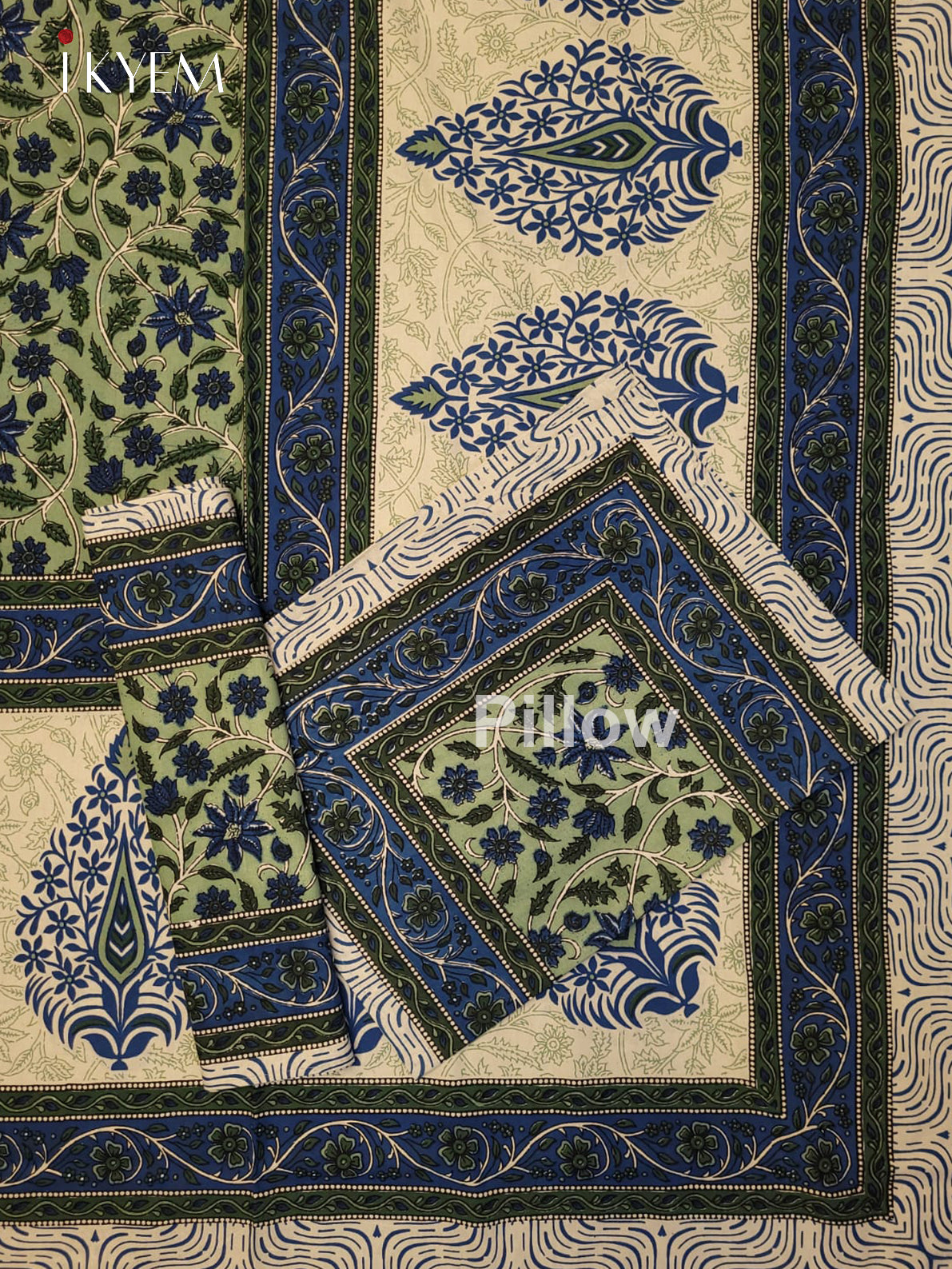 Experience the pinnacle of comfort and elegance with our  Cream & Blue Jaipuri Printed Bedspread, complete with two matching pillow covers. Adorned with stunning floral designs and vibrant hues, this bedspread is crafted from high-quality cotton for the ultimate combination of style and coziness