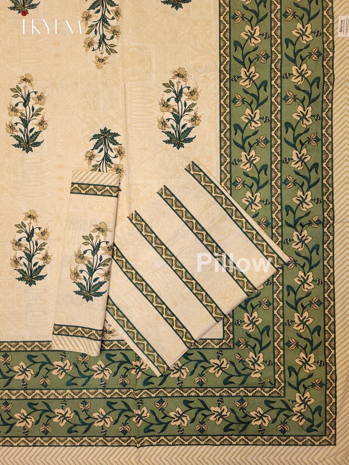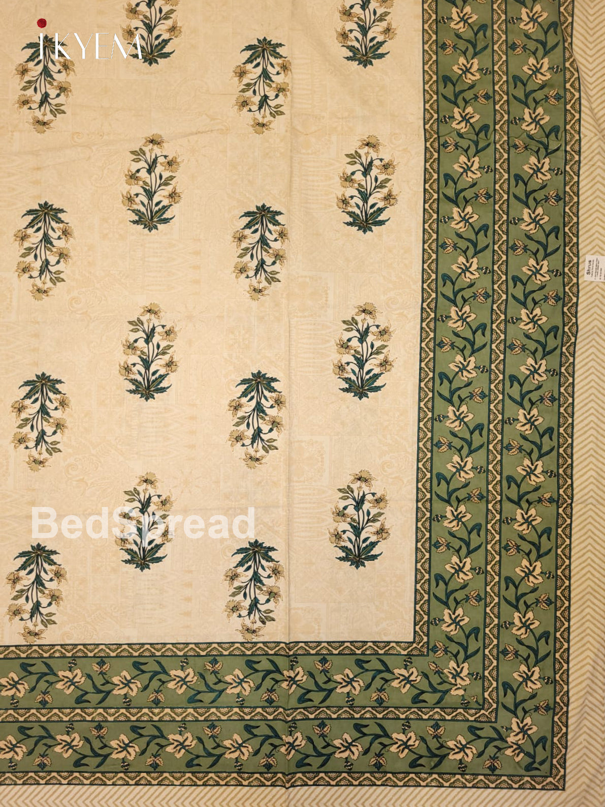 Experience the pinnacle of comfort and elegance with our  Green & Cream Jaipuri Printed Bedspread, complete with two matching pillow covers. Adorned with stunning floral designs and vibrant hues, this bedspread is crafted from high-quality cotton for the ultimate combination of style and coziness