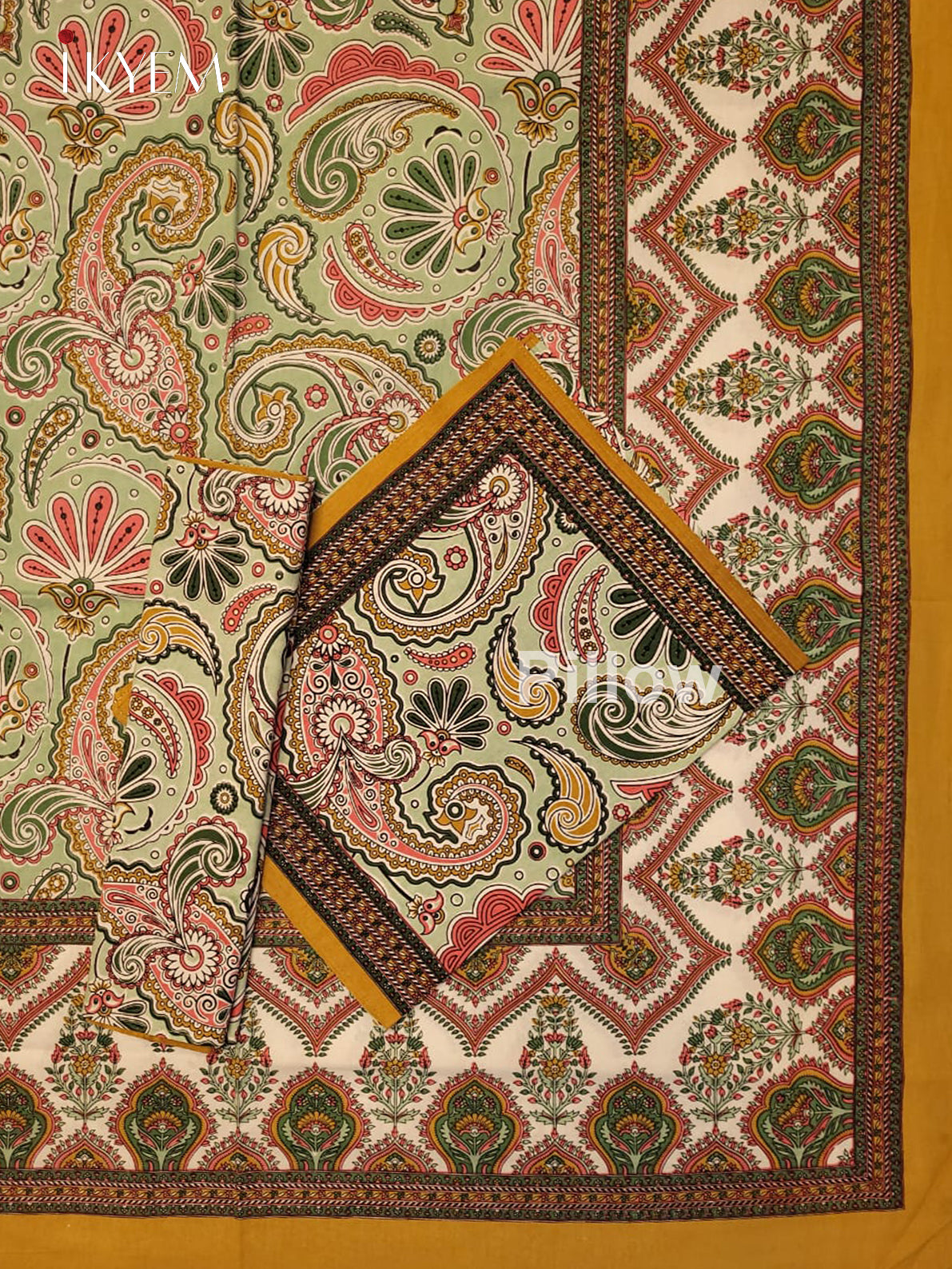 Experience the pinnacle of comfort and elegance with our Green & Brown Jaipuri Printed Bedspread, complete with two matching pillow covers. Adorned with stunning floral designs and vibrant hues, this bedspread is crafted from high-quality cotton for the ultimate combination of style and coziness