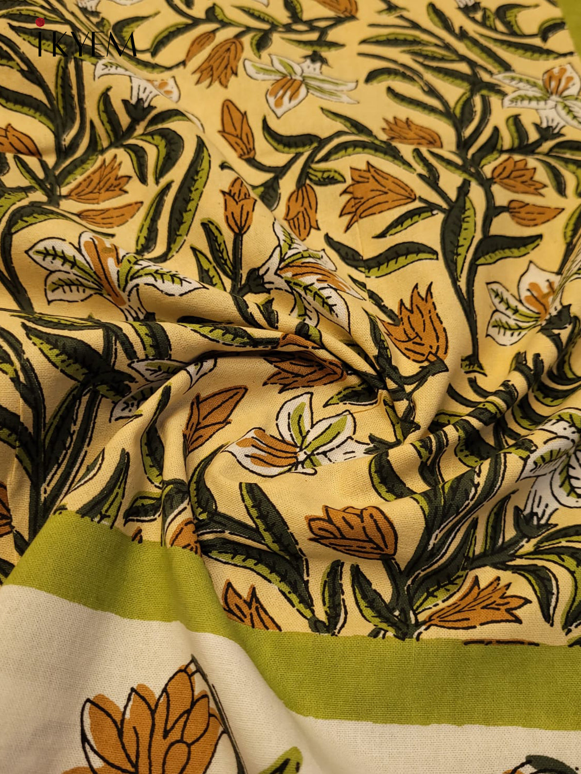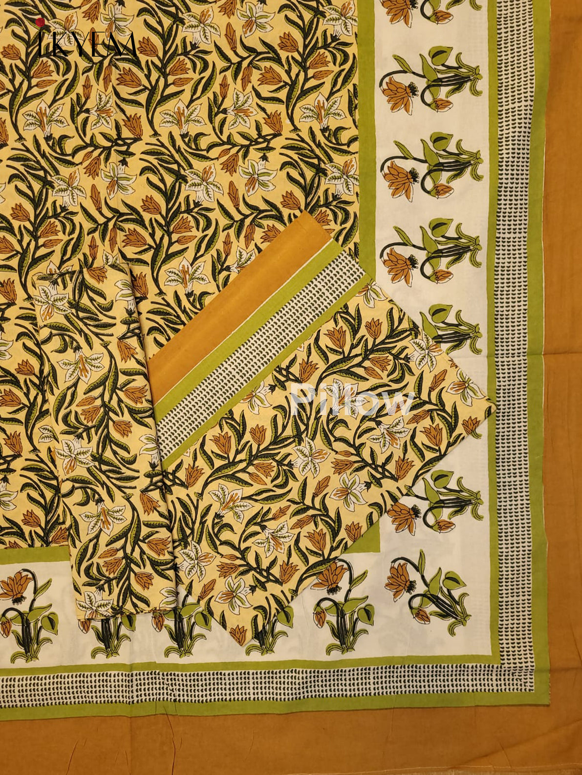 Experience the pinnacle of comfort and elegance with our Yellow & Green Jaipuri Printed Bedspread, complete with two matching pillow covers. Adorned with stunning floral designs and vibrant hues, this bedspread is crafted from high-quality cotton for the ultimate combination of style and coziness