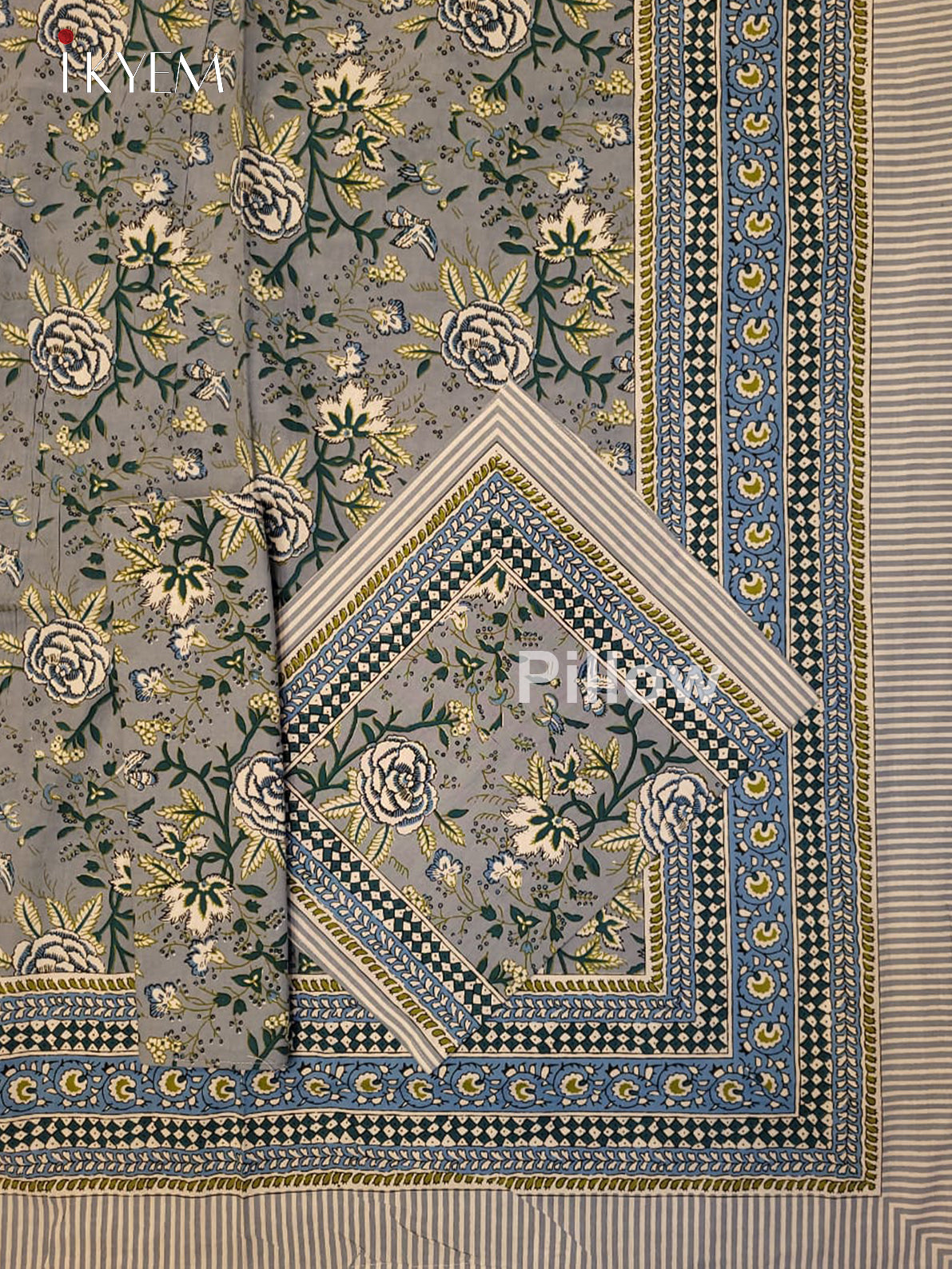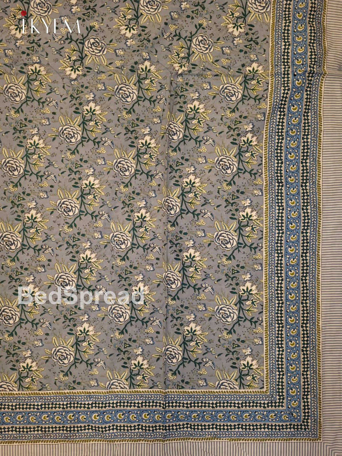 Experience the pinnacle of comfort and elegance with our Grey & Blue Jaipuri Printed Bedspread, complete with two matching pillow covers. Adorned with stunning floral designs and vibrant hues, this bedspread is crafted from high-quality cotton for the ultimate combination of style and coziness