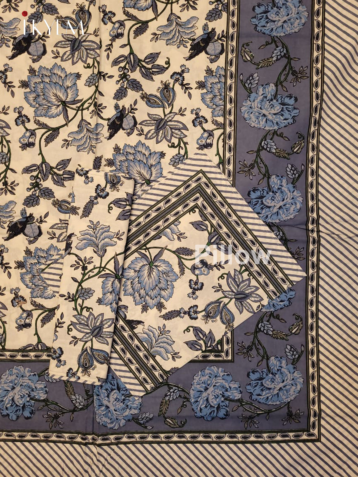 Experience the pinnacle of comfort and elegance with our  Cream & Blue Jaipuri Printed Bedspread, complete with two matching pillow covers. Adorned with stunning floral designs and vibrant hues, this bedspread is crafted from high-quality cotton for the ultimate combination of style and coziness