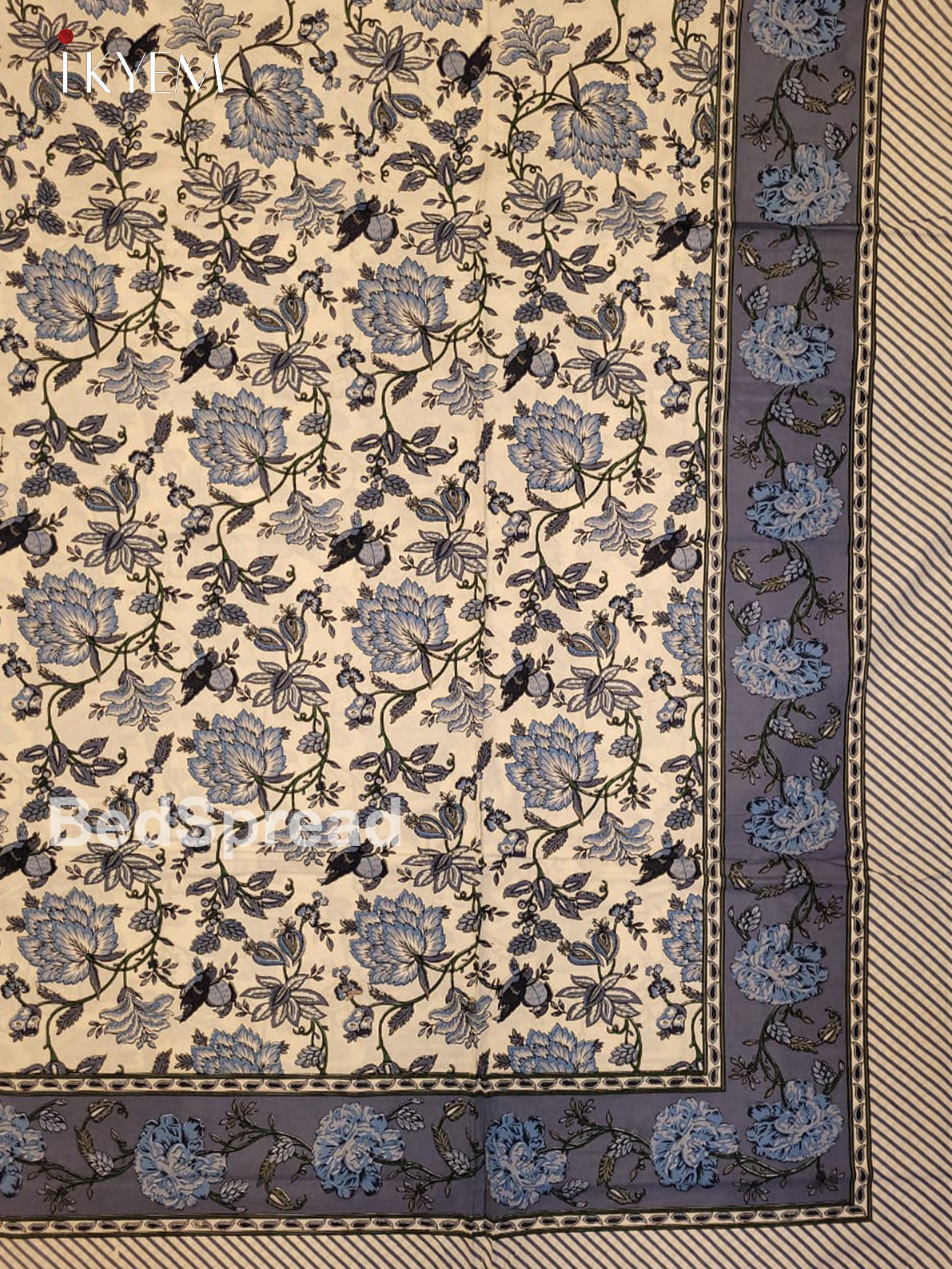 Cream & Blue - Bed Spread