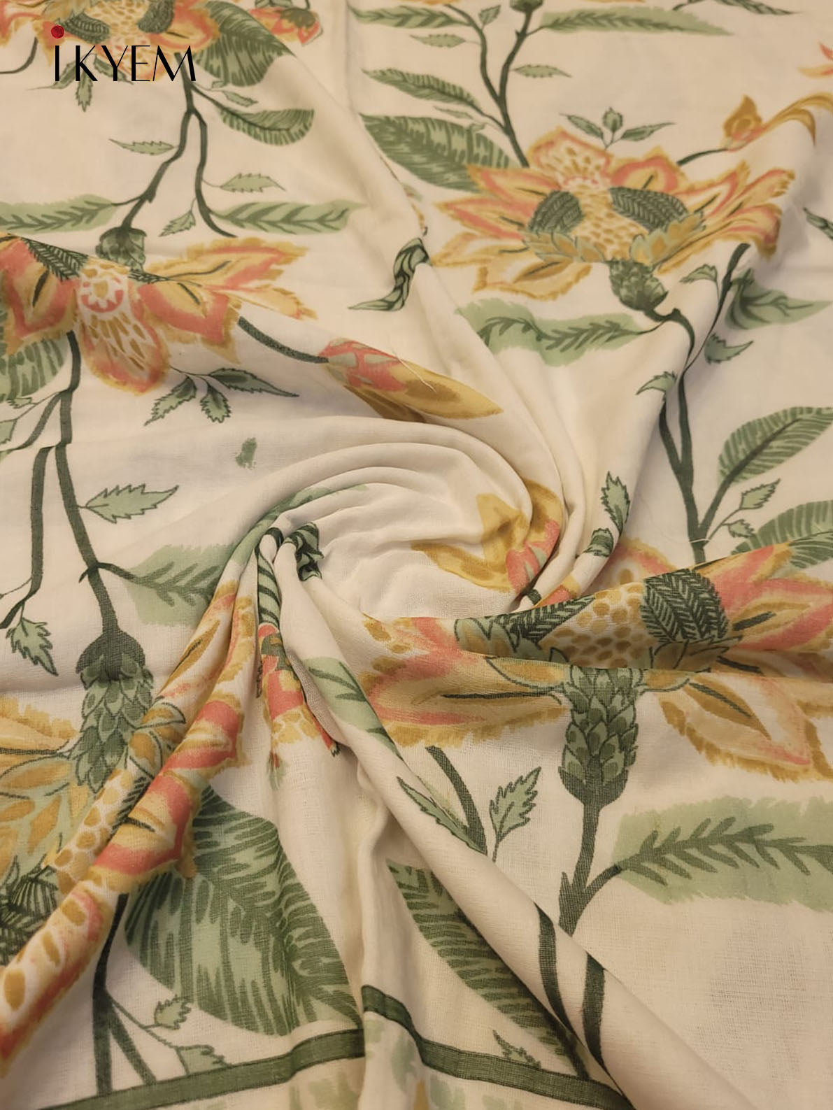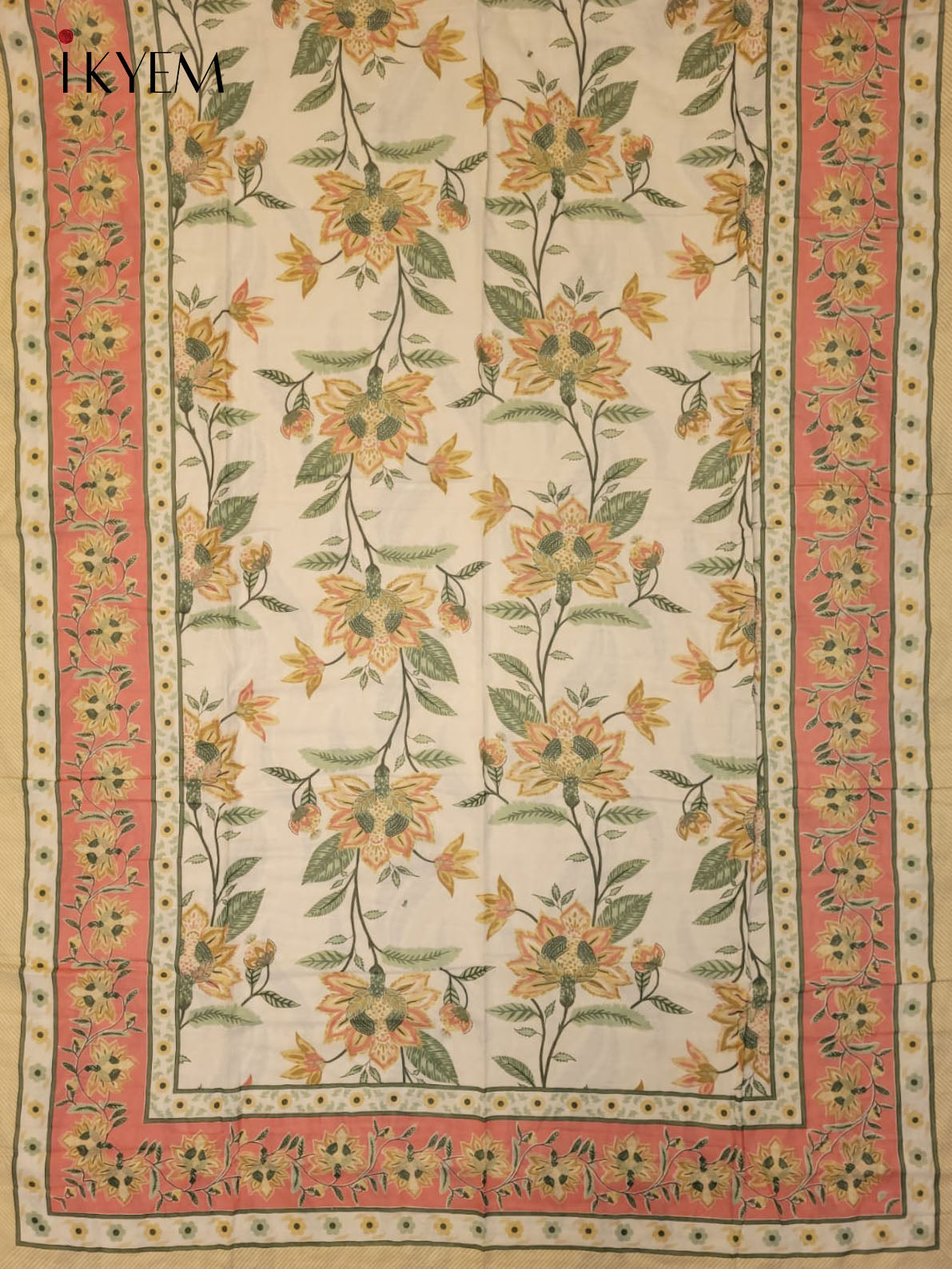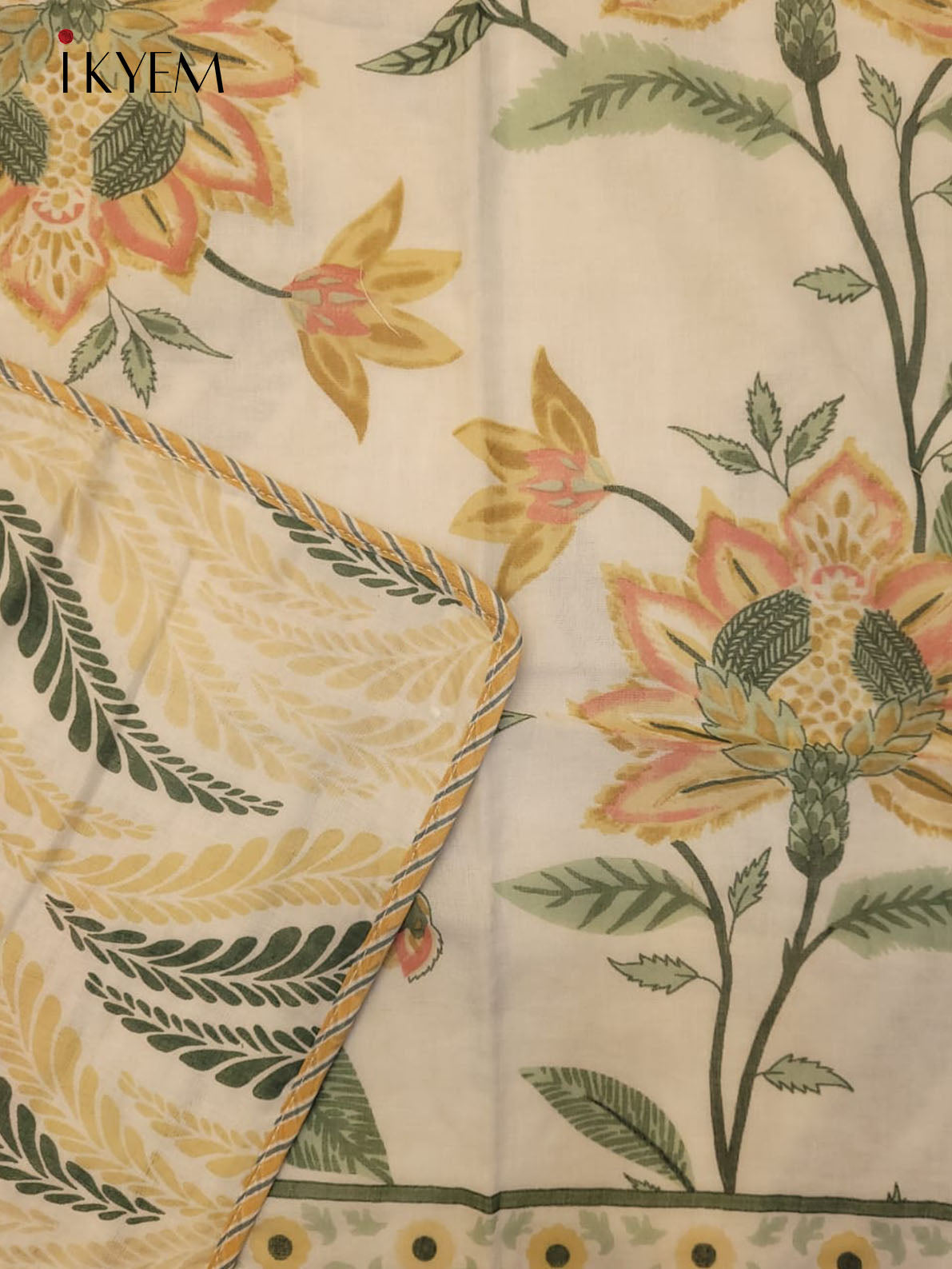 Elegant Cream & Peach Printed Bedspread, complete with two matching pillow covers. Adorned with stunning floral designs and vibrant hues, this bedspread is crafted from high-quality cotton for the ultimate combination of style and coziness