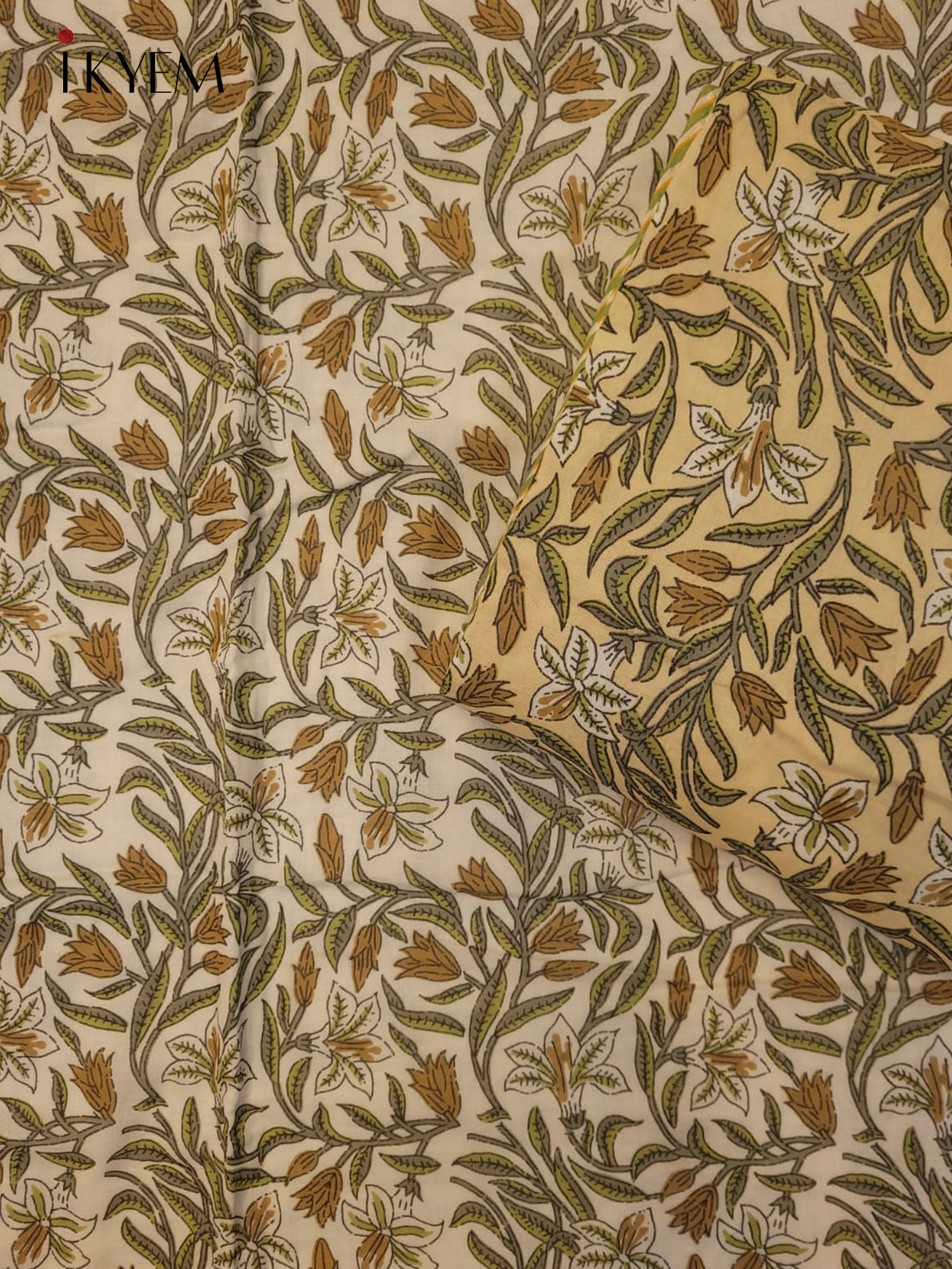 Elegant Cream & Mustard Printed Bedspread, complete with two matching pillow covers. Adorned with stunning floral designs and vibrant hues, this bedspread is crafted from high-quality cotton for the ultimate combination of style and coziness