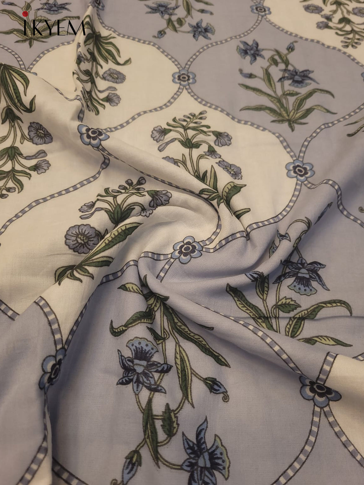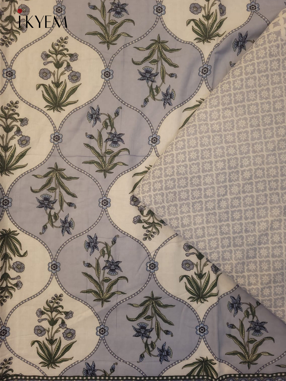 Elegant Cream & Blue Printed Bedspread, complete with two matching pillow covers. Adorned with stunning floral designs and vibrant hues, this bedspread is crafted from high-quality cotton for the ultimate combination of style and coziness