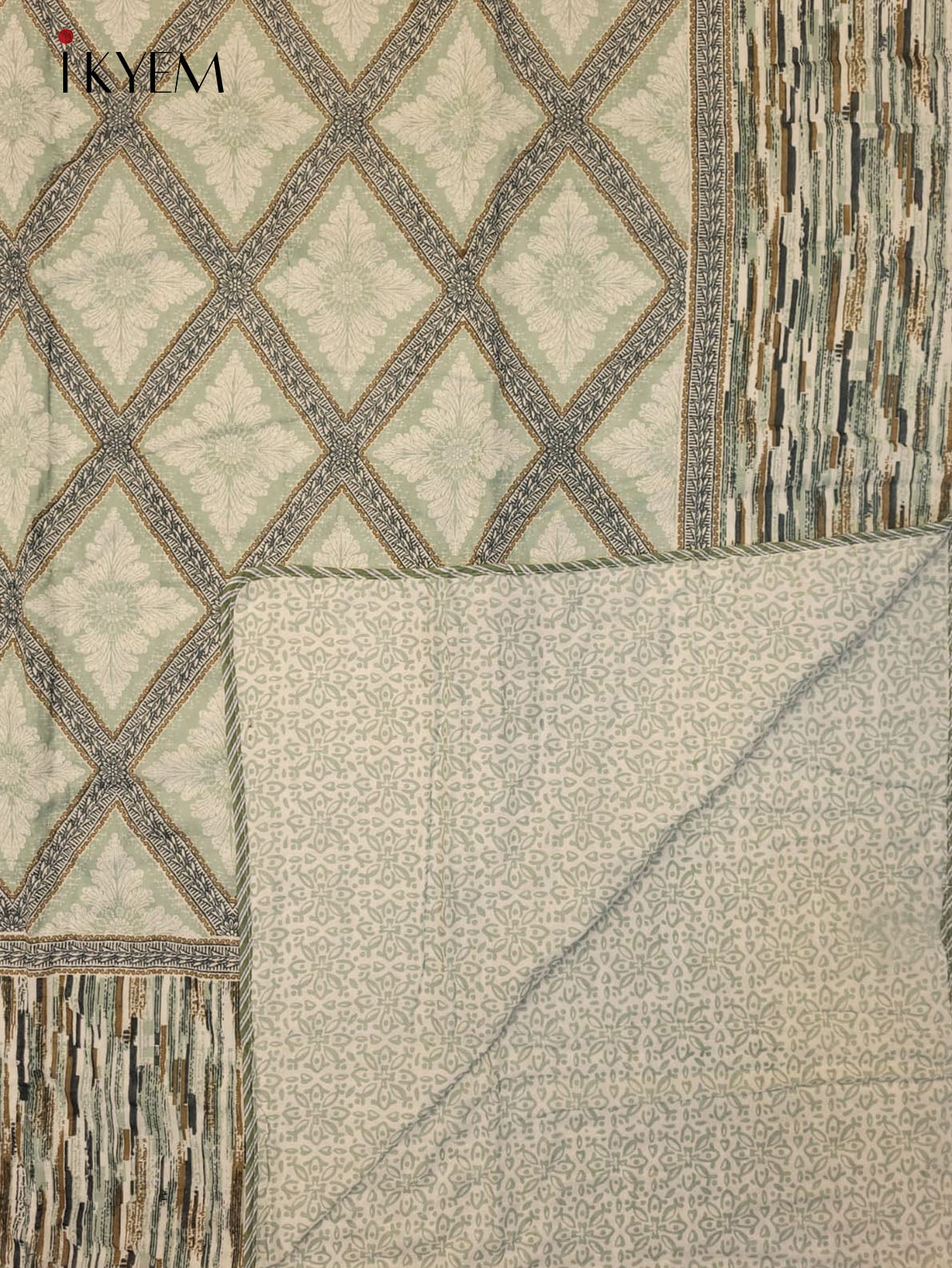 Experience the pinnacle of comfort and elegance with our Grey & Green Jaipuri Printed Bedspread, complete with two matching pillow covers. Adorned with stunning floral designs and vibrant hues, this bedspread is crafted from high-quality cotton for the ultimate combination of style and coziness
