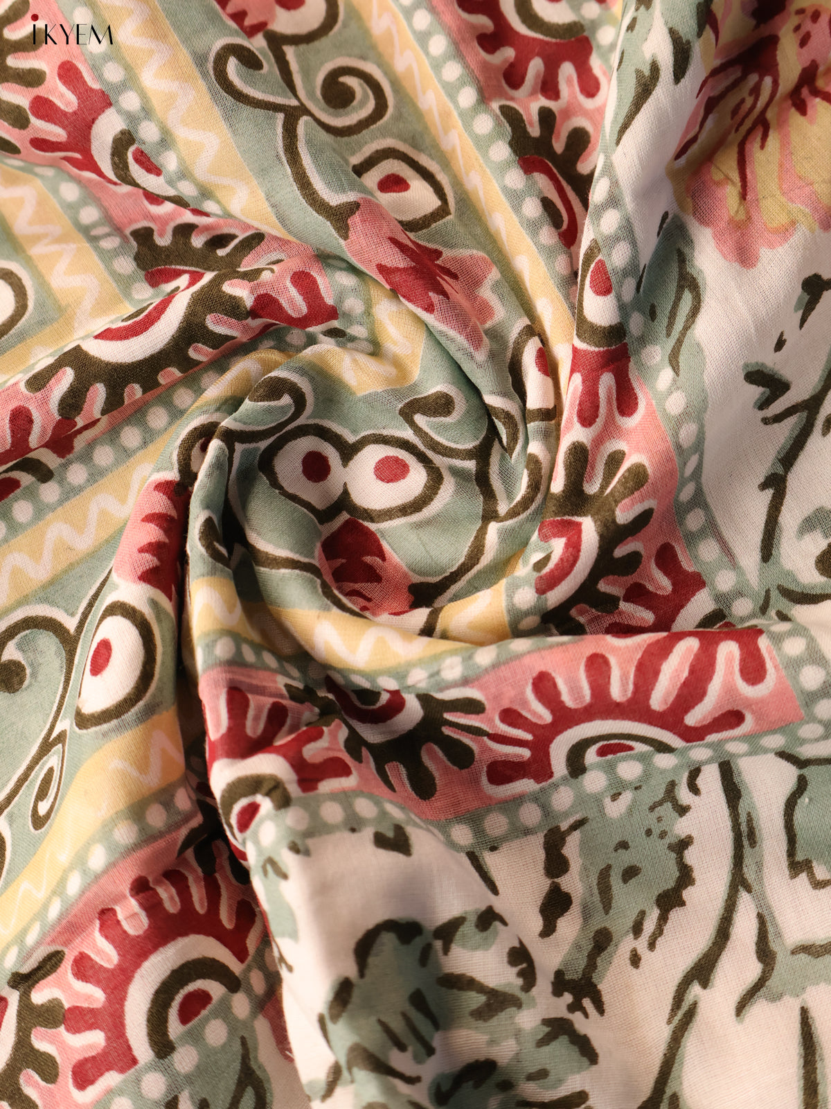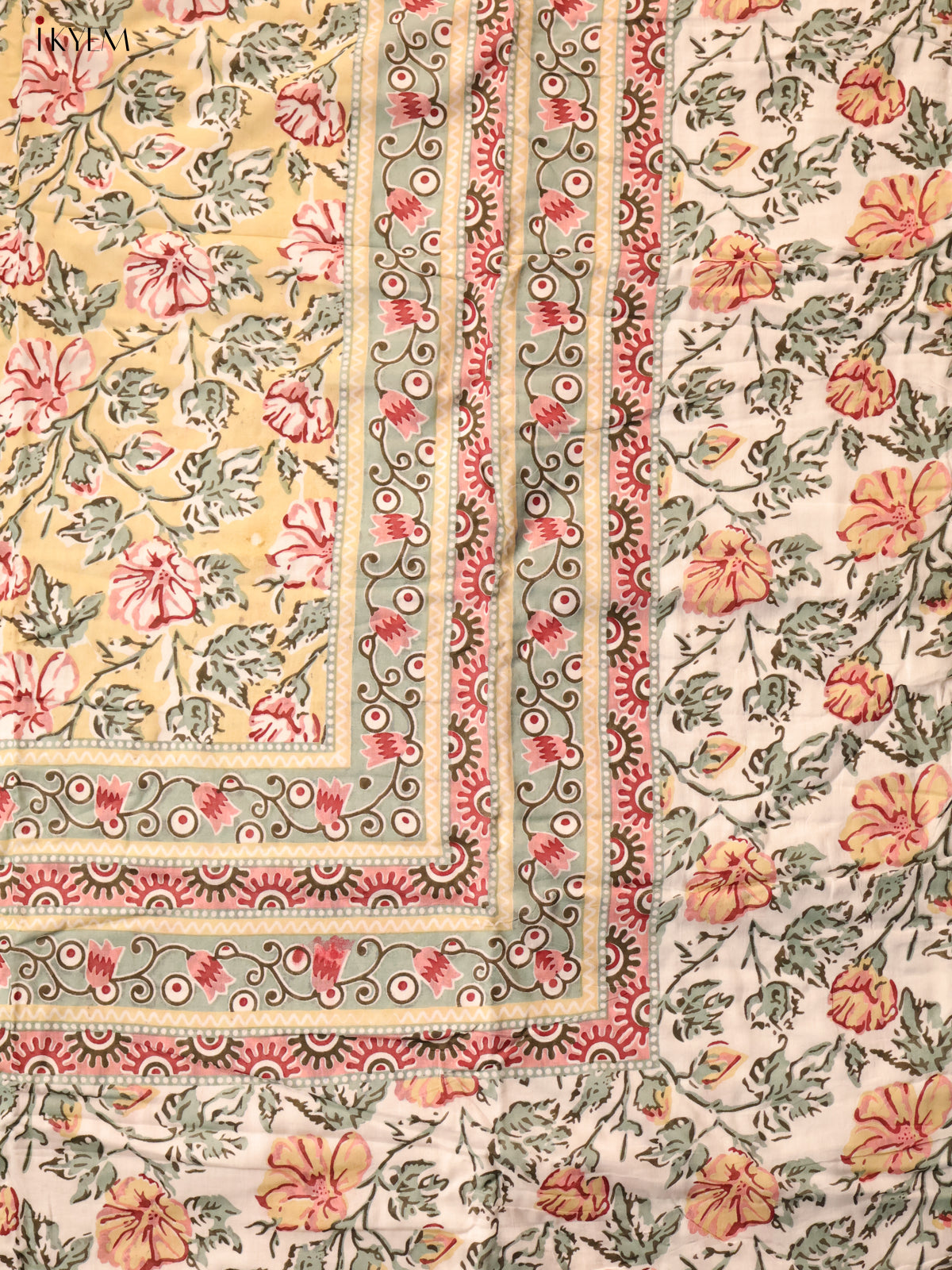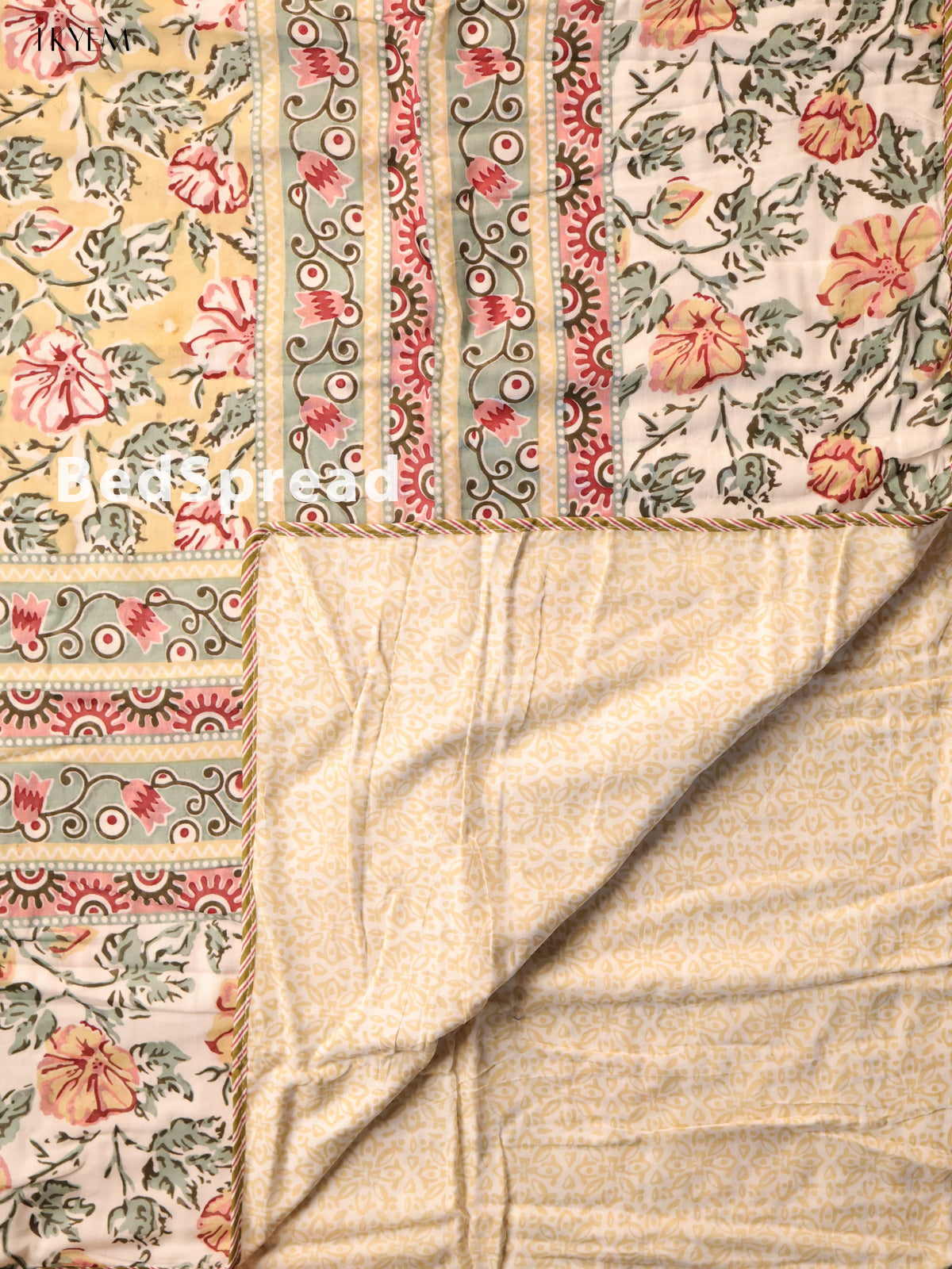 Experience the pinnacle of comfort and elegance with our Cream & peach Jaipuri Printed Bedspread, complete with two matching pillow covers. Adorned with stunning floral designs and vibrant hues, this bedspread is crafted from high-quality cotton for the ultimate combination of style and coziness