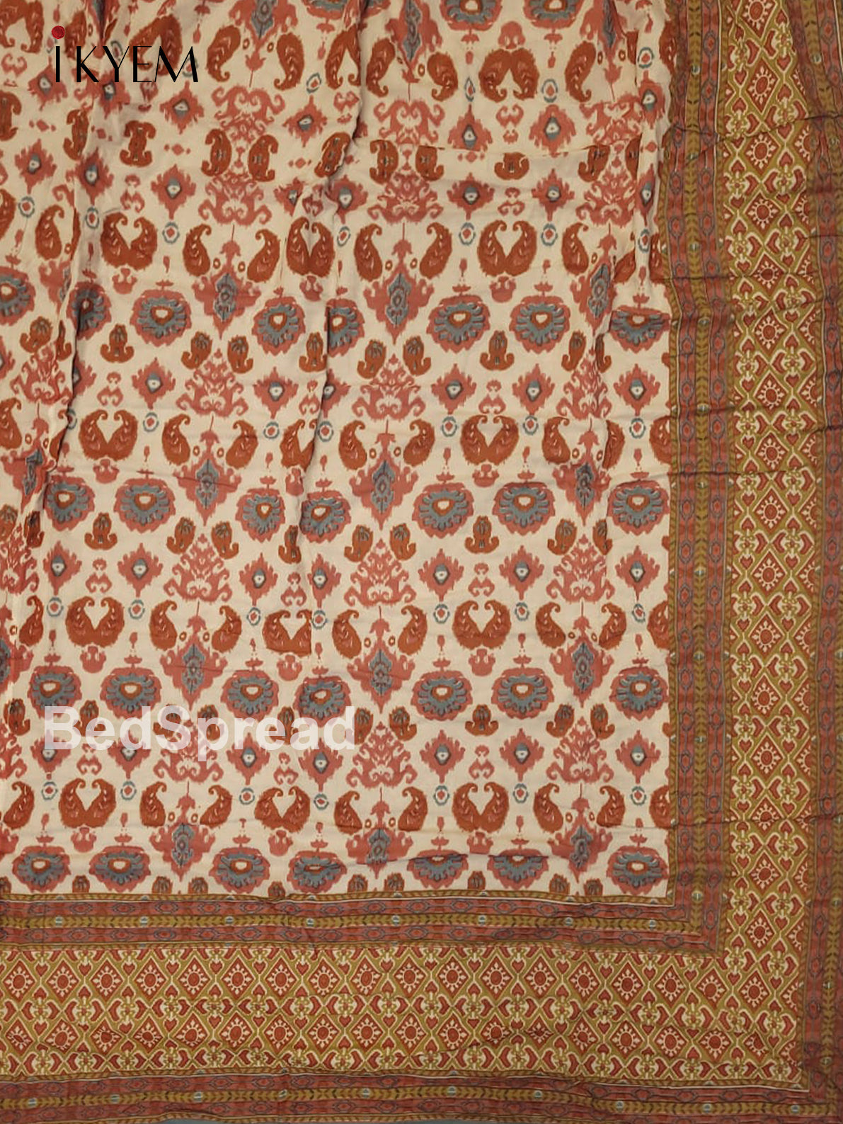Elegant Cream & Green Printed Bedspread, complete with two matching pillow covers. Adorned with stunning floral designs and vibrant hues, this bedspread is crafted from high-quality cotton for the ultimate combination of style and coziness