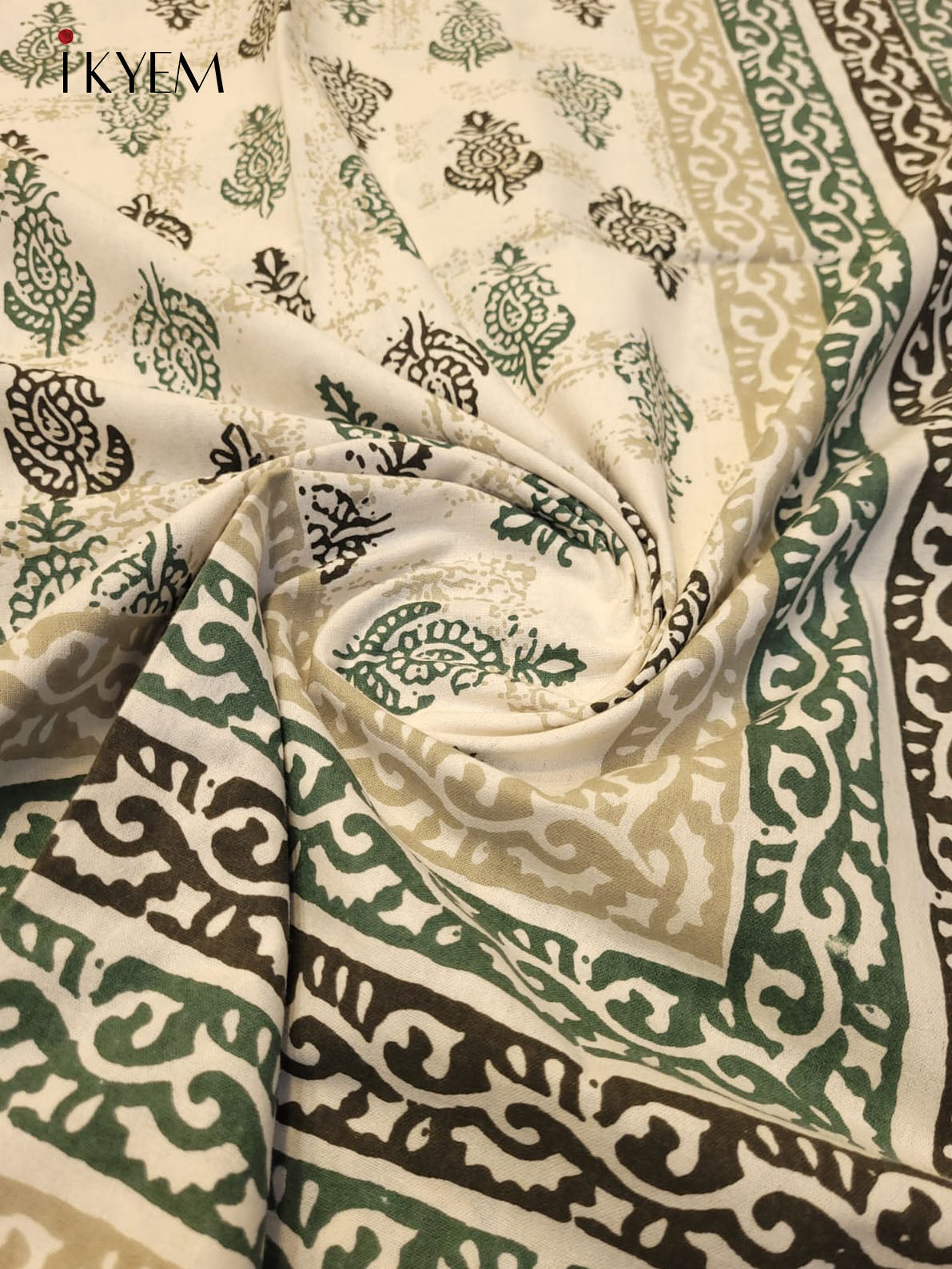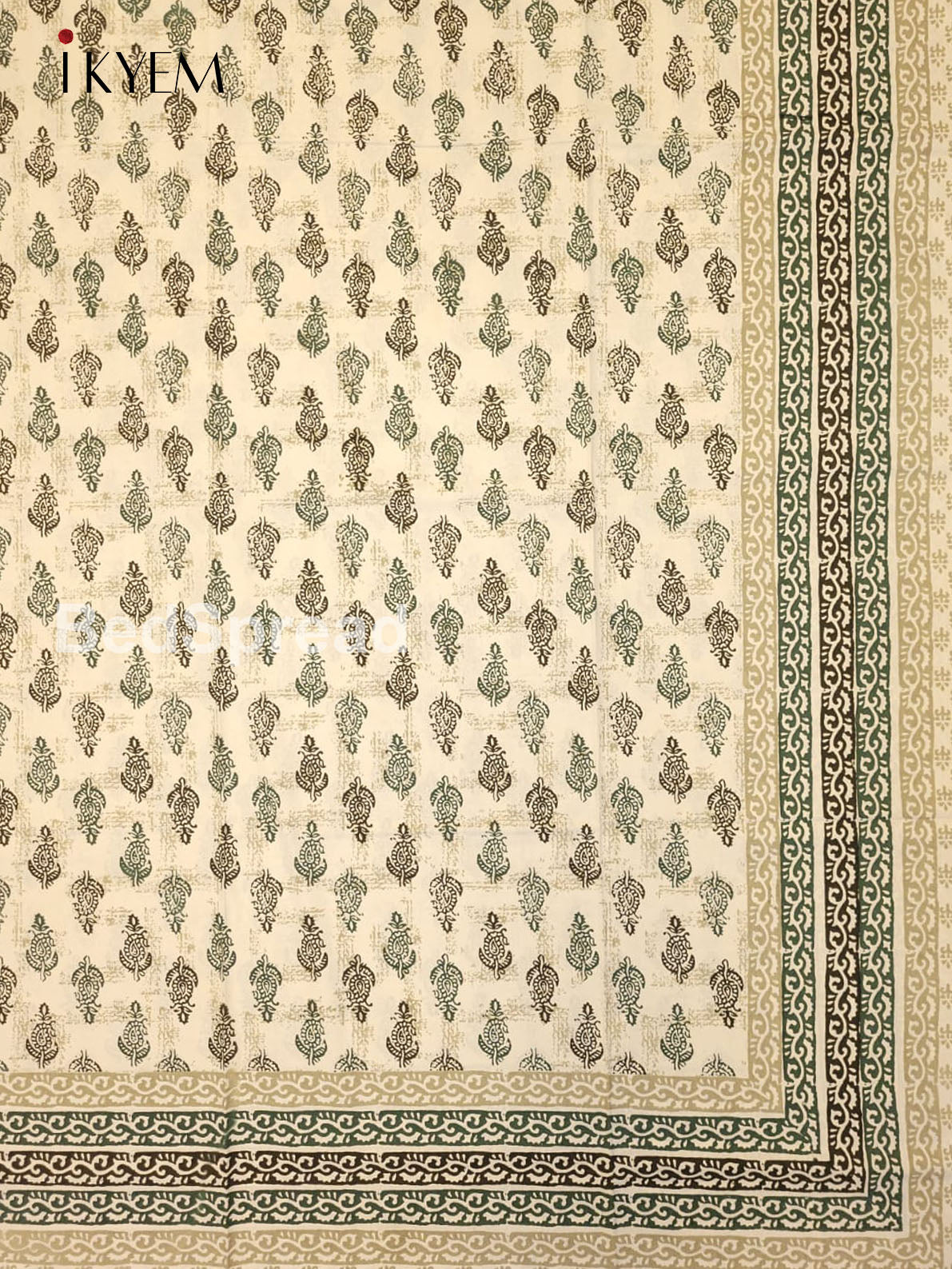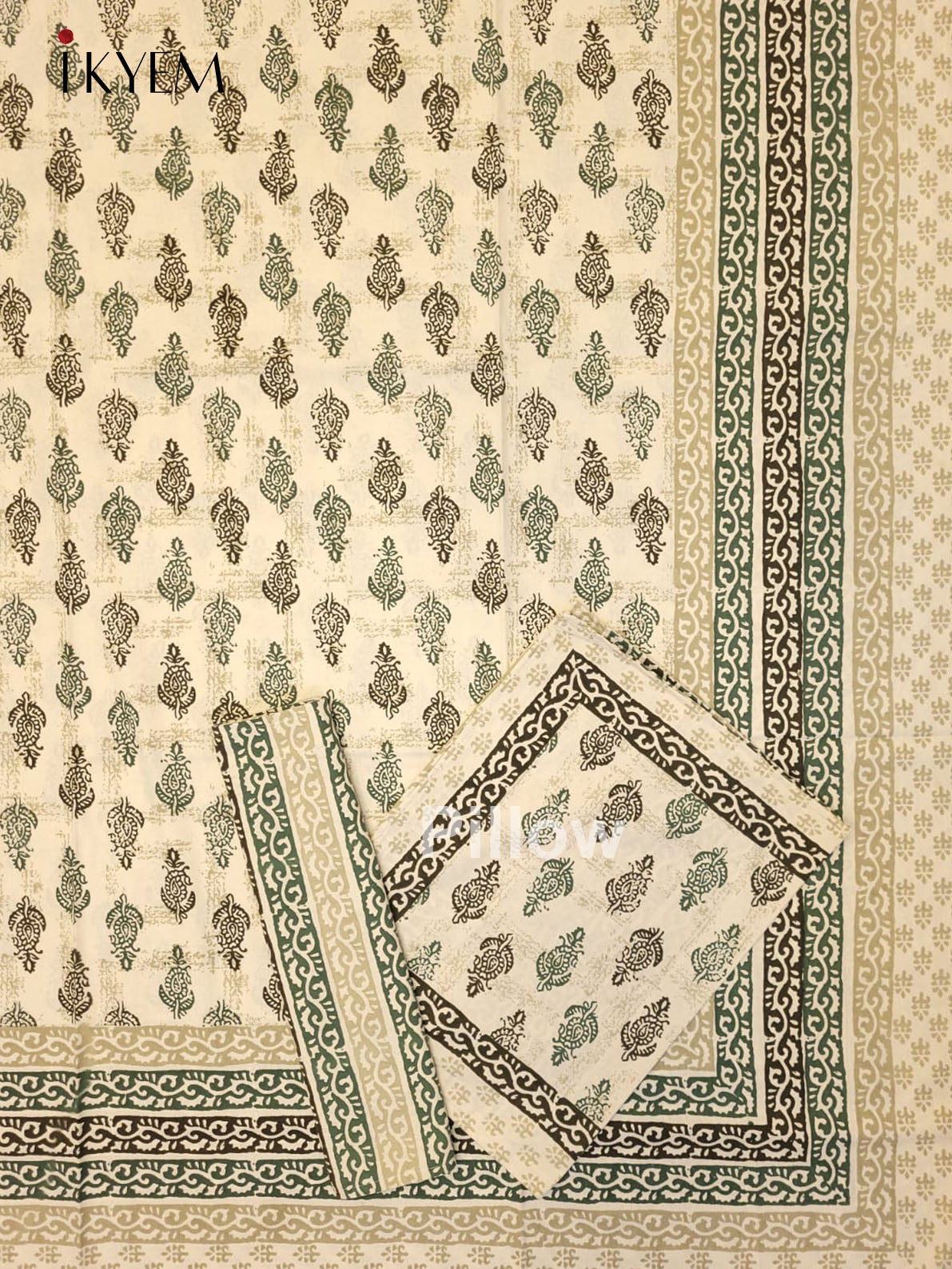 Experience the pinnacle of comfort and elegance with our Cream & Green Jaipuri Printed Bedspread, complete with two matching pillow covers. Adorned with stunning floral designs and vibrant hues, this bedspread is crafted from high-quality cotton for the ultimate combination of style and coziness
