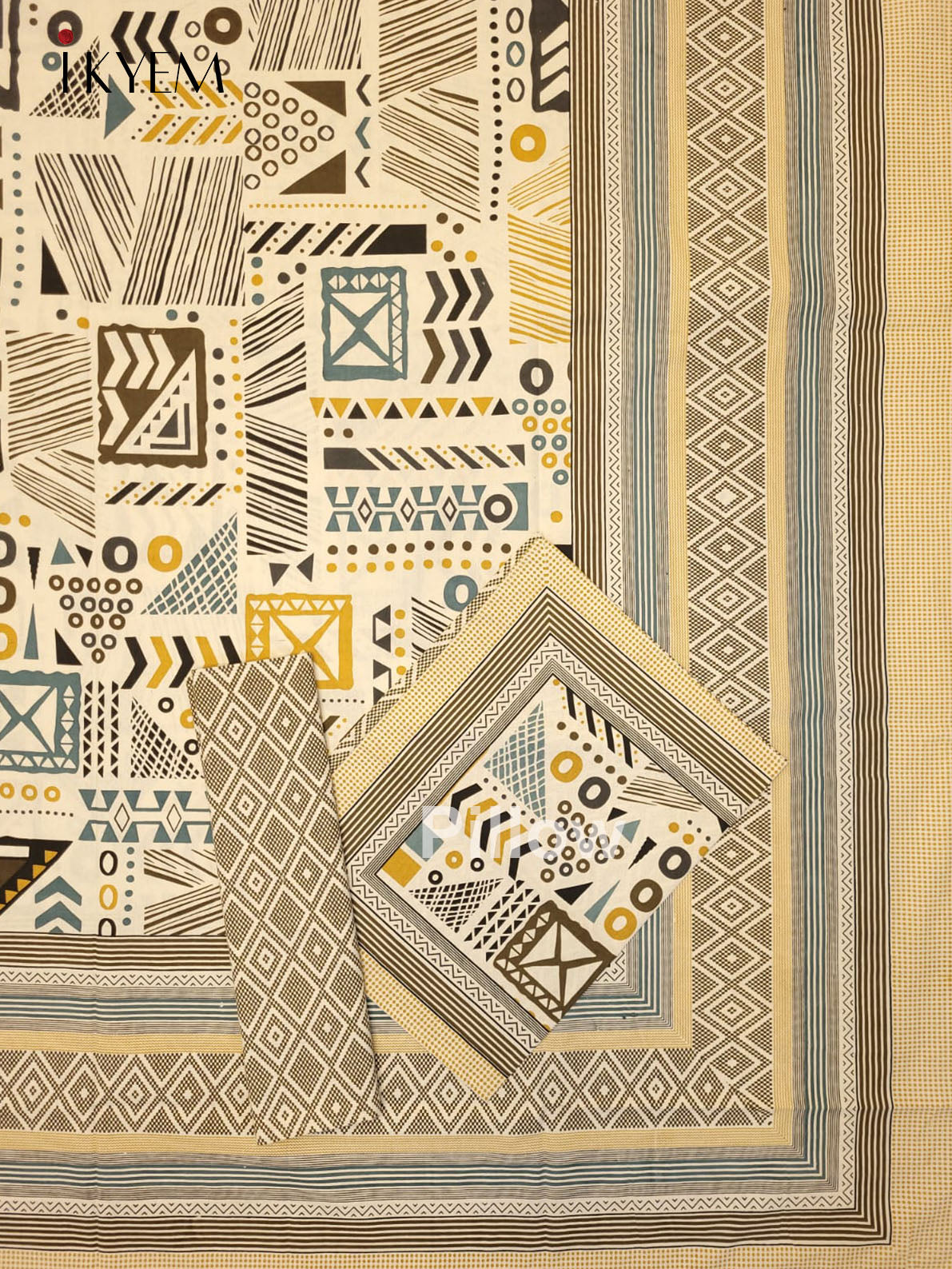 Experience the pinnacle of comfort and elegance with our Cream & Yellow Jaipuri Printed Bedspread, complete with two matching pillow covers. Adorned with stunning floral designs and vibrant hues, this bedspread is crafted from high-quality cotton for the ultimate combination of style and coziness