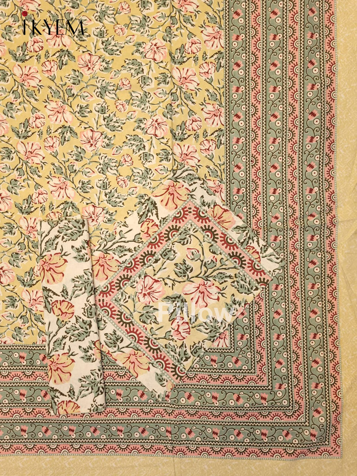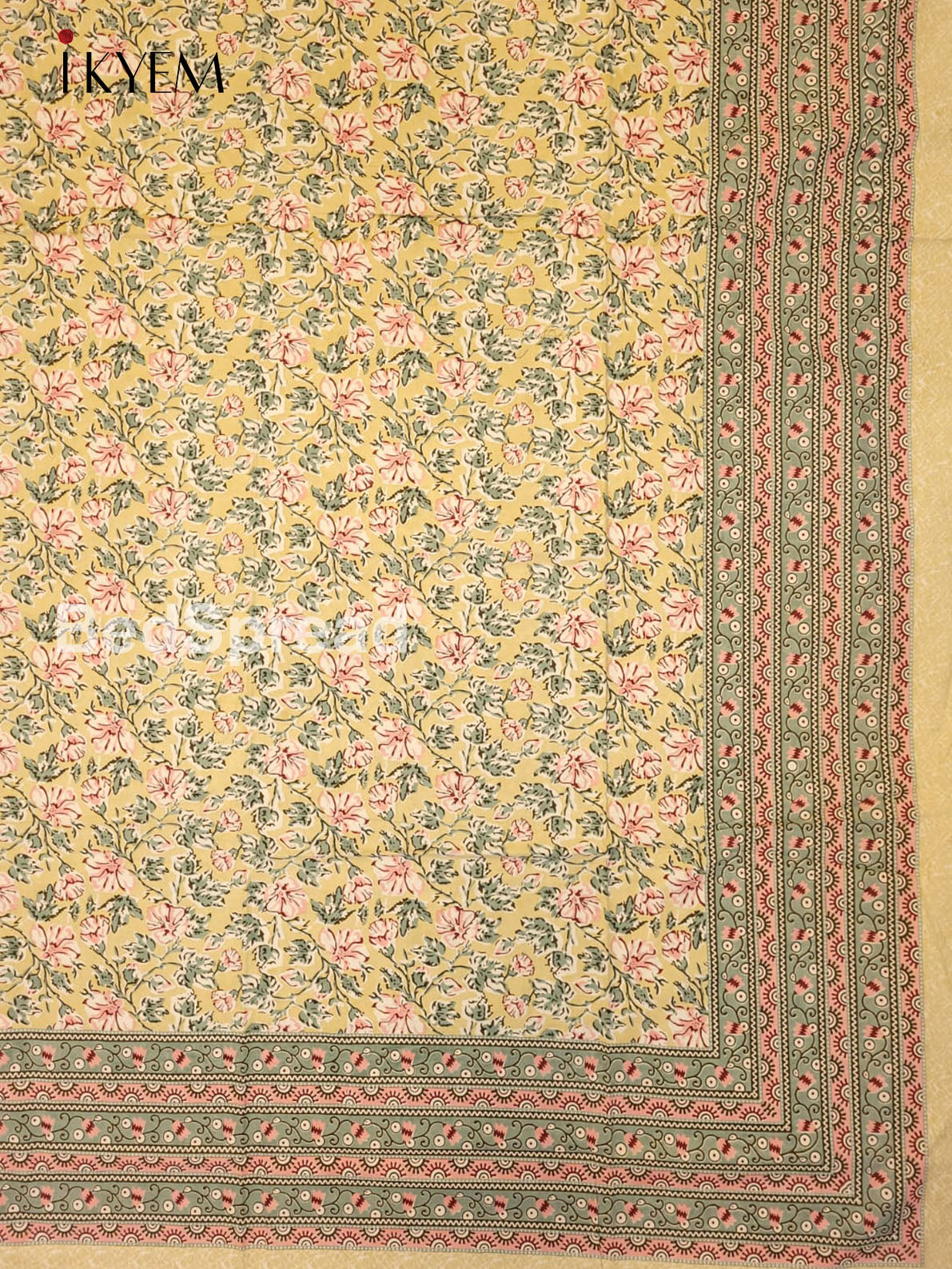 Experience the pinnacle of comfort and elegance with our Yellow & Green Jaipuri Printed Bedspread, complete with two matching pillow covers. Adorned with stunning floral designs and vibrant hues, this bedspread is crafted from high-quality cotton for the ultimate combination of style and coziness