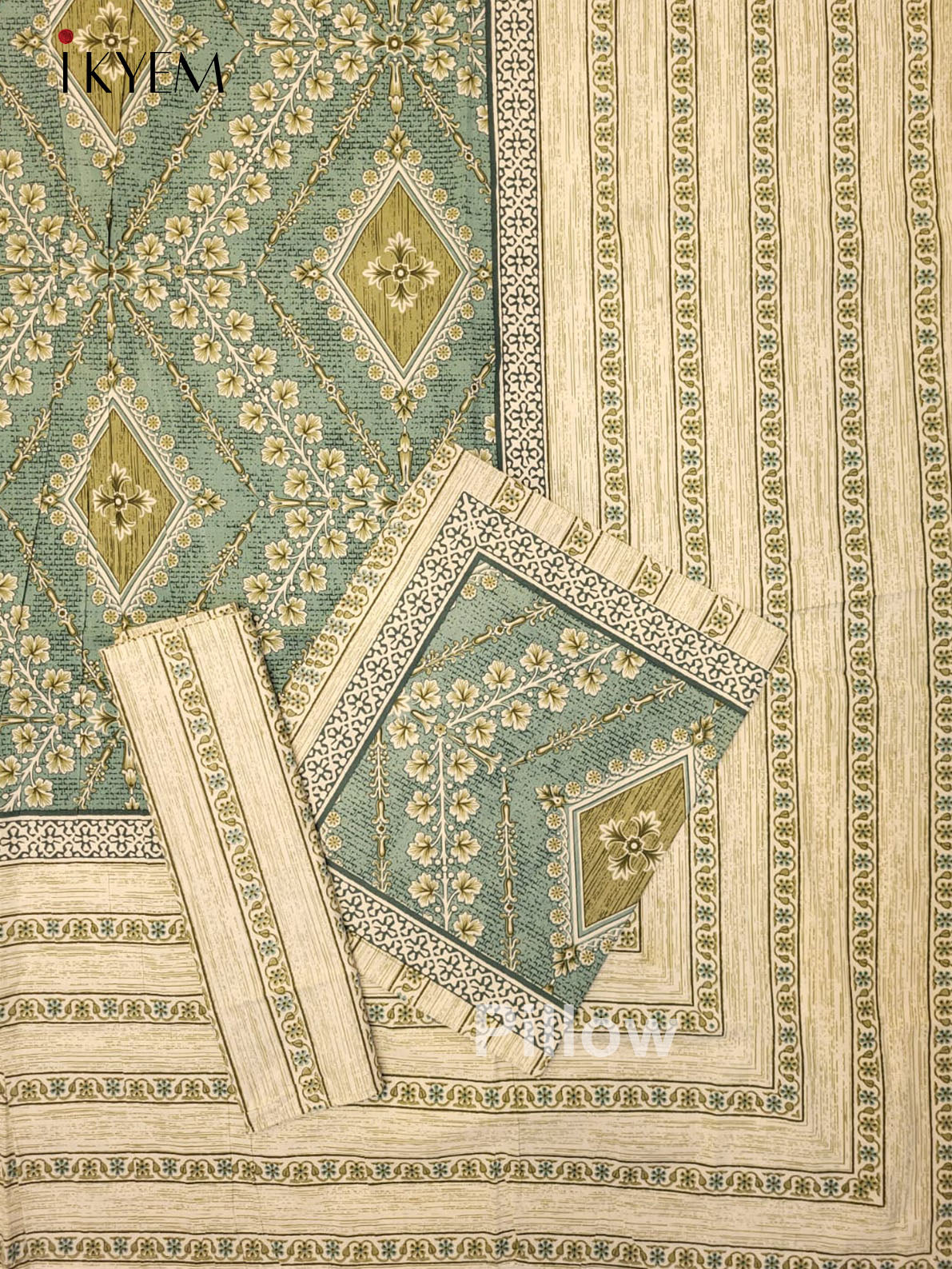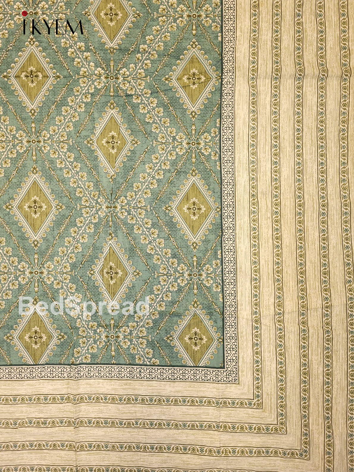 Experience the pinnacle of comfort and elegance with our  Cream & Pastel Green Jaipuri Printed Bedspread, complete with two matching pillow covers. Adorned with stunning floral designs and vibrant hues, this bedspread is crafted from high-quality cotton for the ultimate combination of style and coziness
