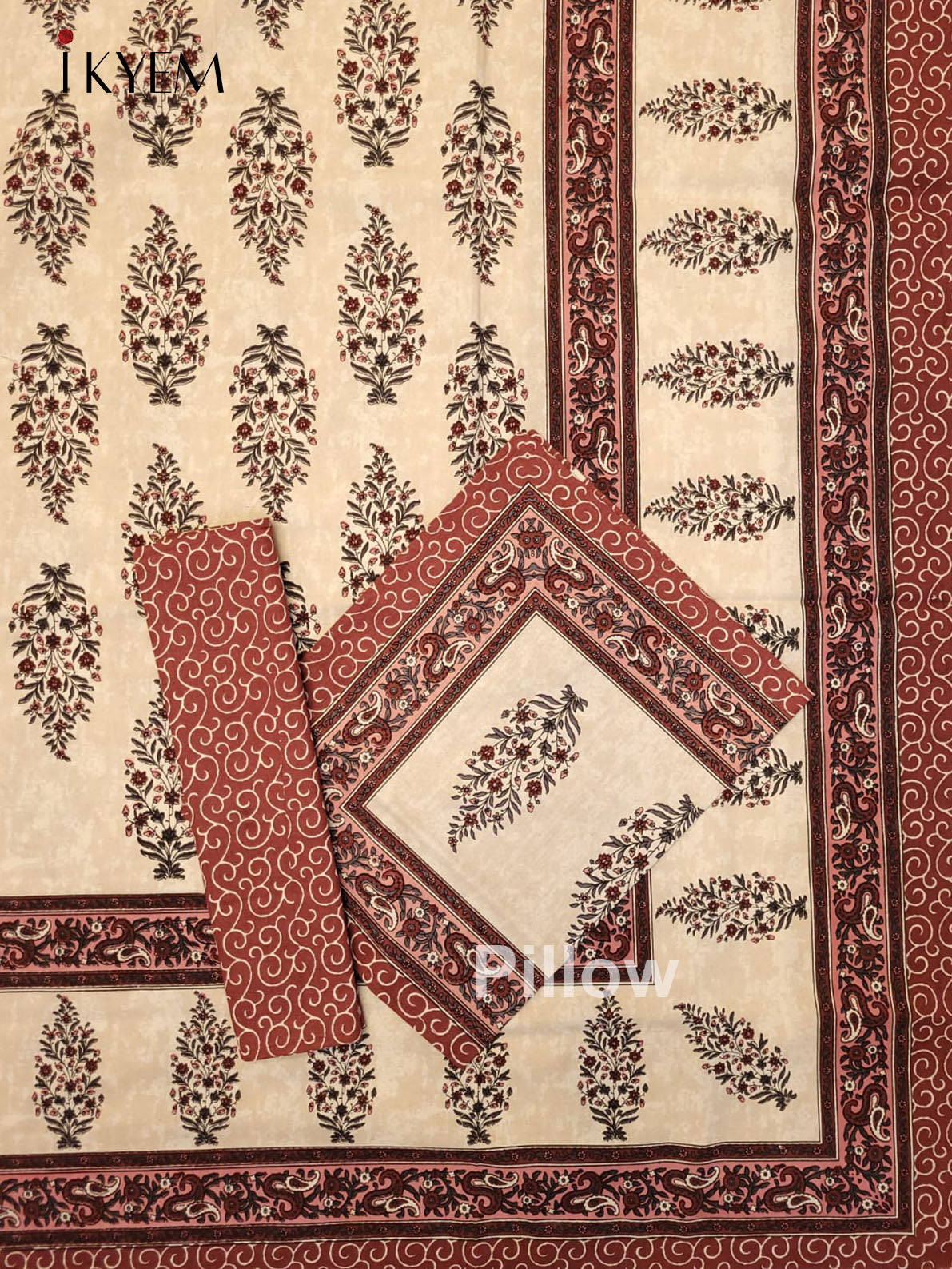 Experience the pinnacle of comfort and elegance with our Cream & Red Jaipuri Printed Bedspread, complete with two matching pillow covers. Adorned with stunning floral designs and vibrant hues, this bedspread is crafted from high-quality cotton for the ultimate combination of style and coziness