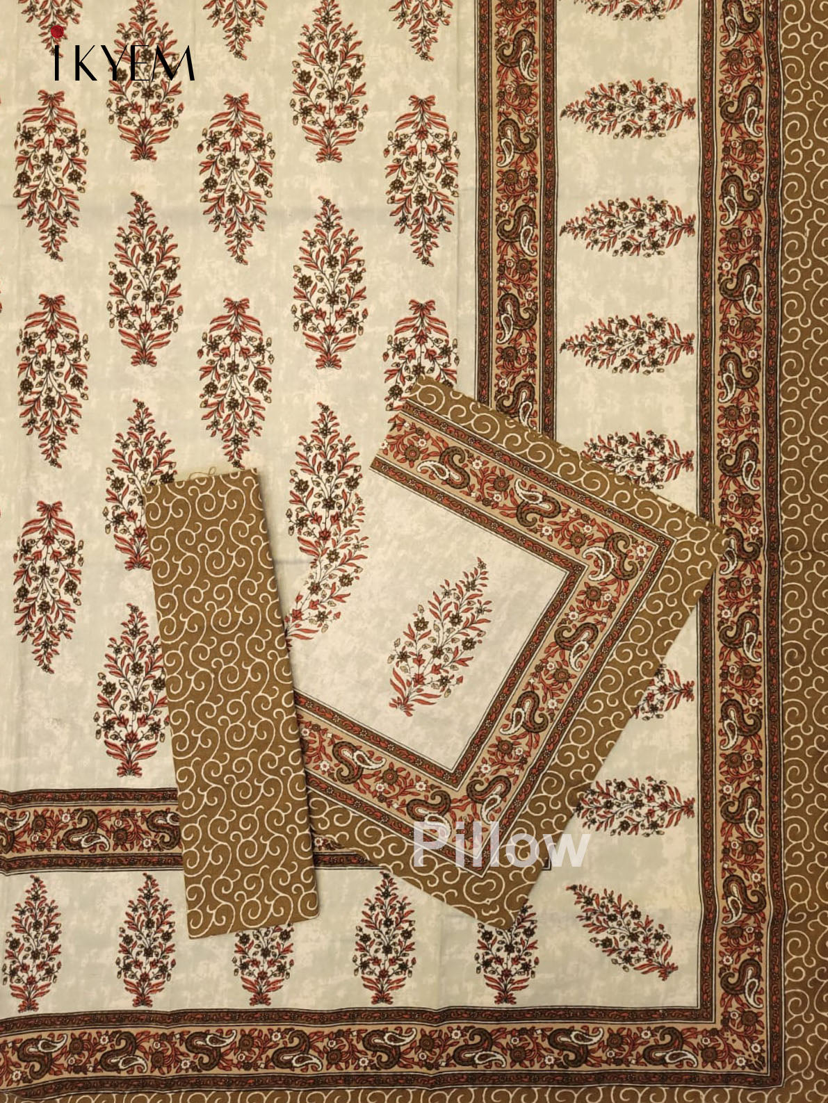 Experience the pinnacle of comfort and elegance with our Grey & Brown Jaipuri Printed Bedspread, complete with two matching pillow covers. Adorned with stunning floral designs and vibrant hues, this bedspread is crafted from high-quality cotton for the ultimate combination of style and coziness