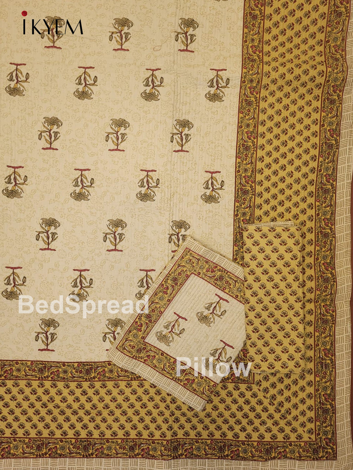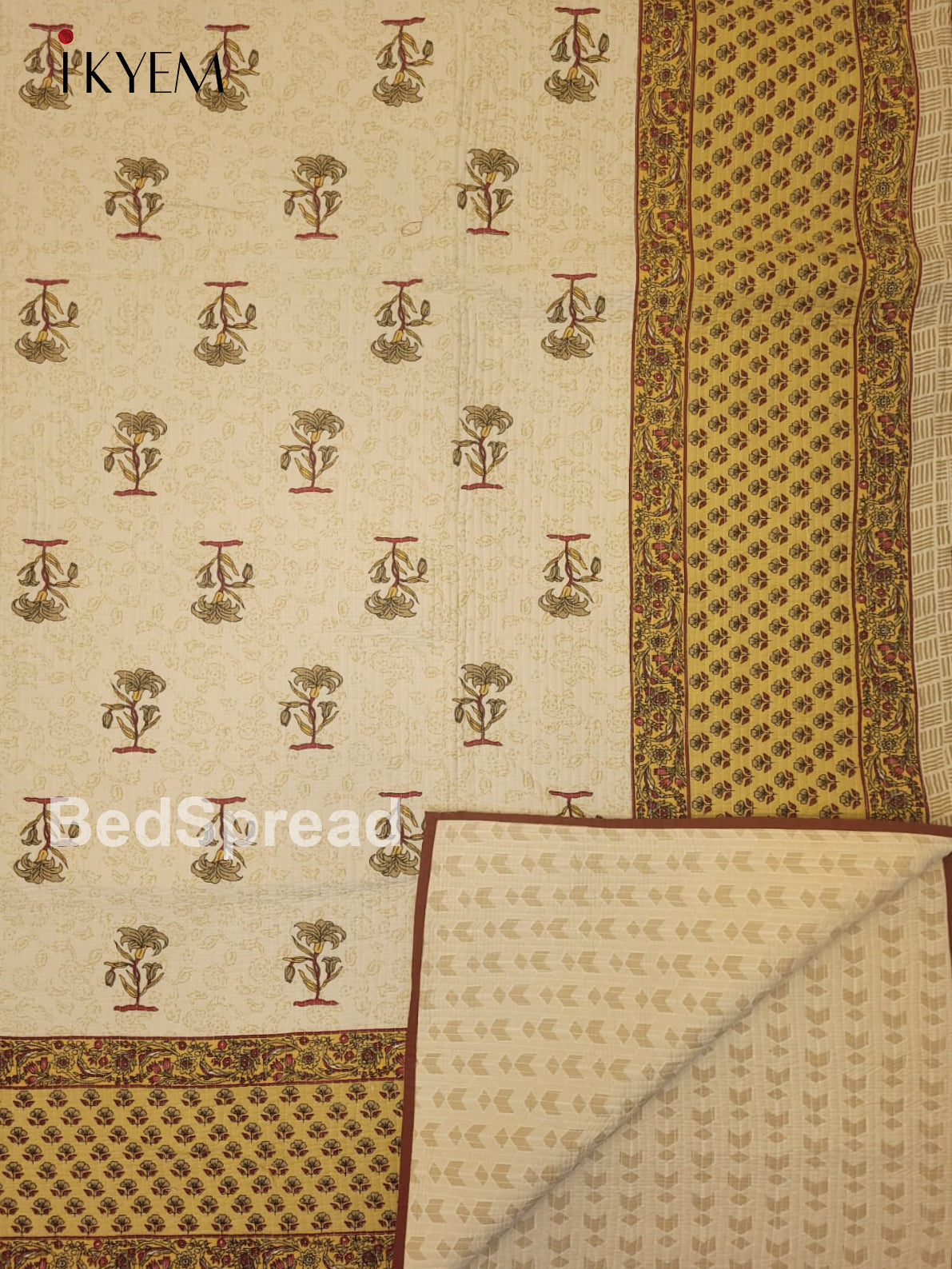 Elegant Cream & Brown Printed Bedspread, complete with two matching pillow covers. Adorned with stunning floral designs and vibrant hues, this bedspread is crafted from high-quality cotton for the ultimate combination of style and coziness