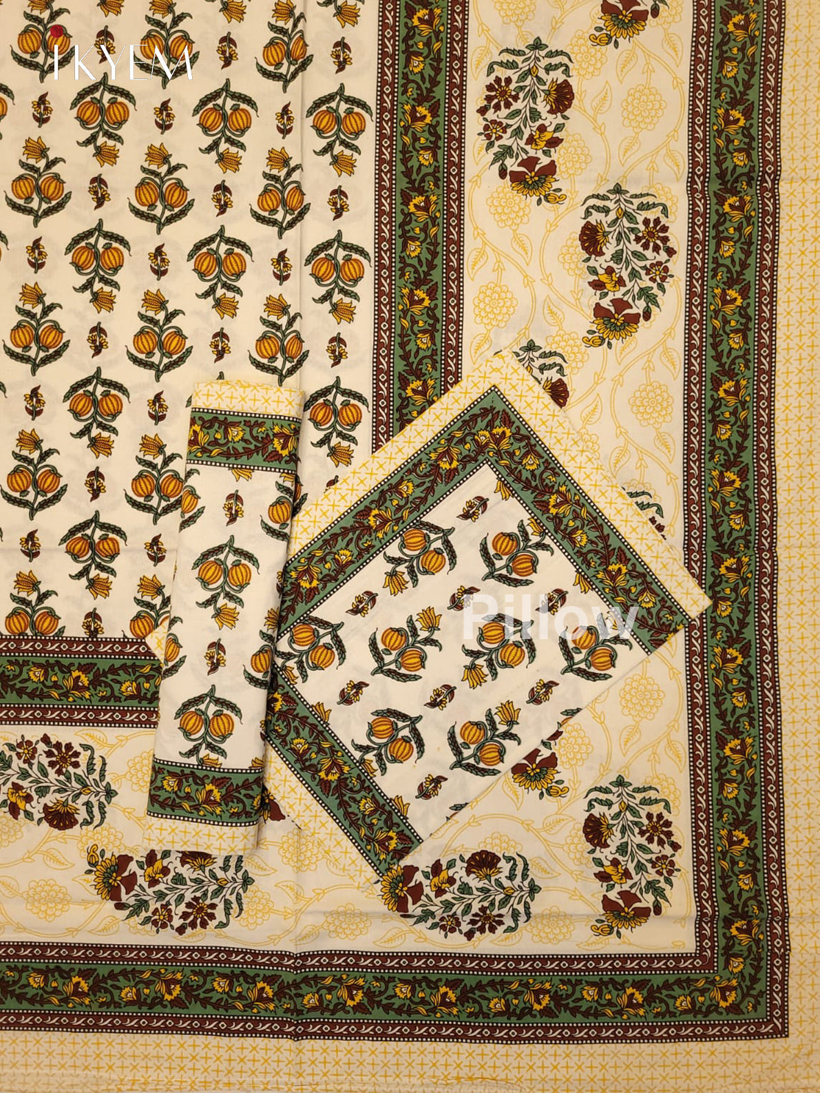 Experience the pinnacle of comfort and elegance with our Cream & Yellow Jaipuri Printed Bedspread, complete with two matching pillow covers. Adorned with stunning floral designs and vibrant hues, this bedspread is crafted from high-quality cotton for the ultimate combination of style and coziness