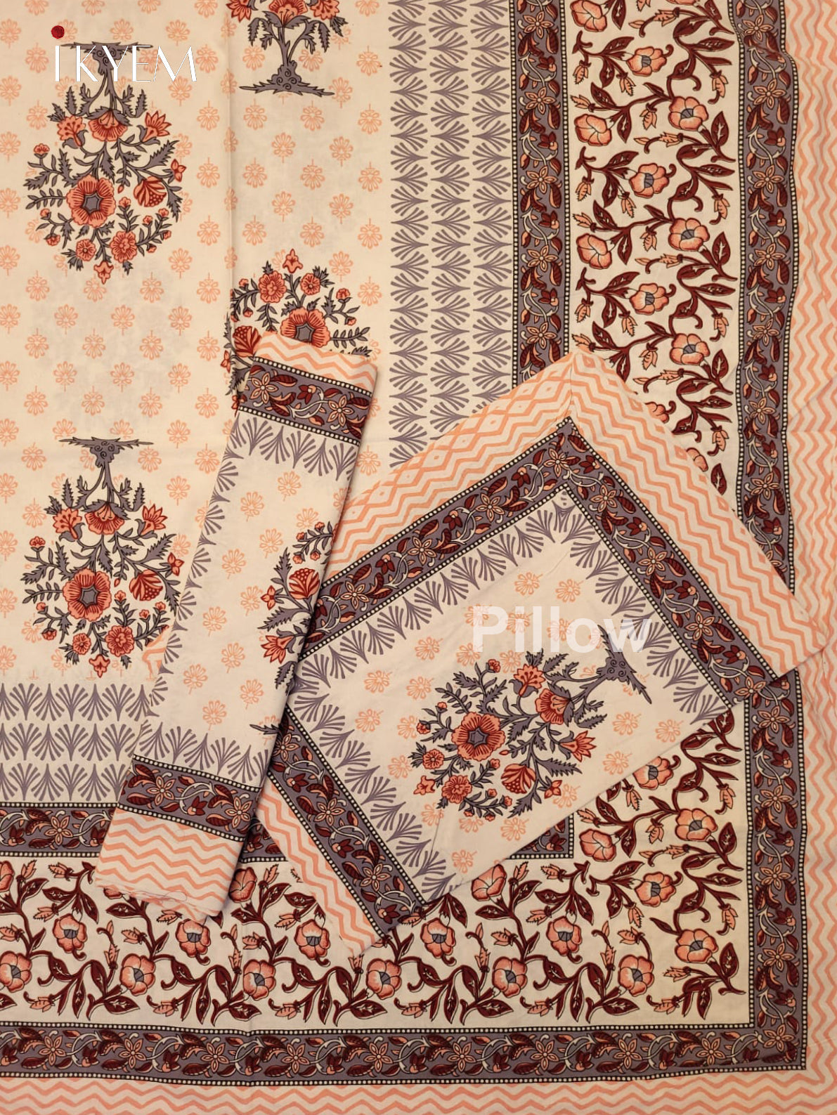 Experience the pinnacle of comfort and elegance with our Cream &  Brown  Jaipuri Printed Bedspread, complete with two matching pillow covers. Adorned with stunning floral designs and vibrant hues, this bedspread is crafted from high-quality cotton for the ultimate combination of style and coziness