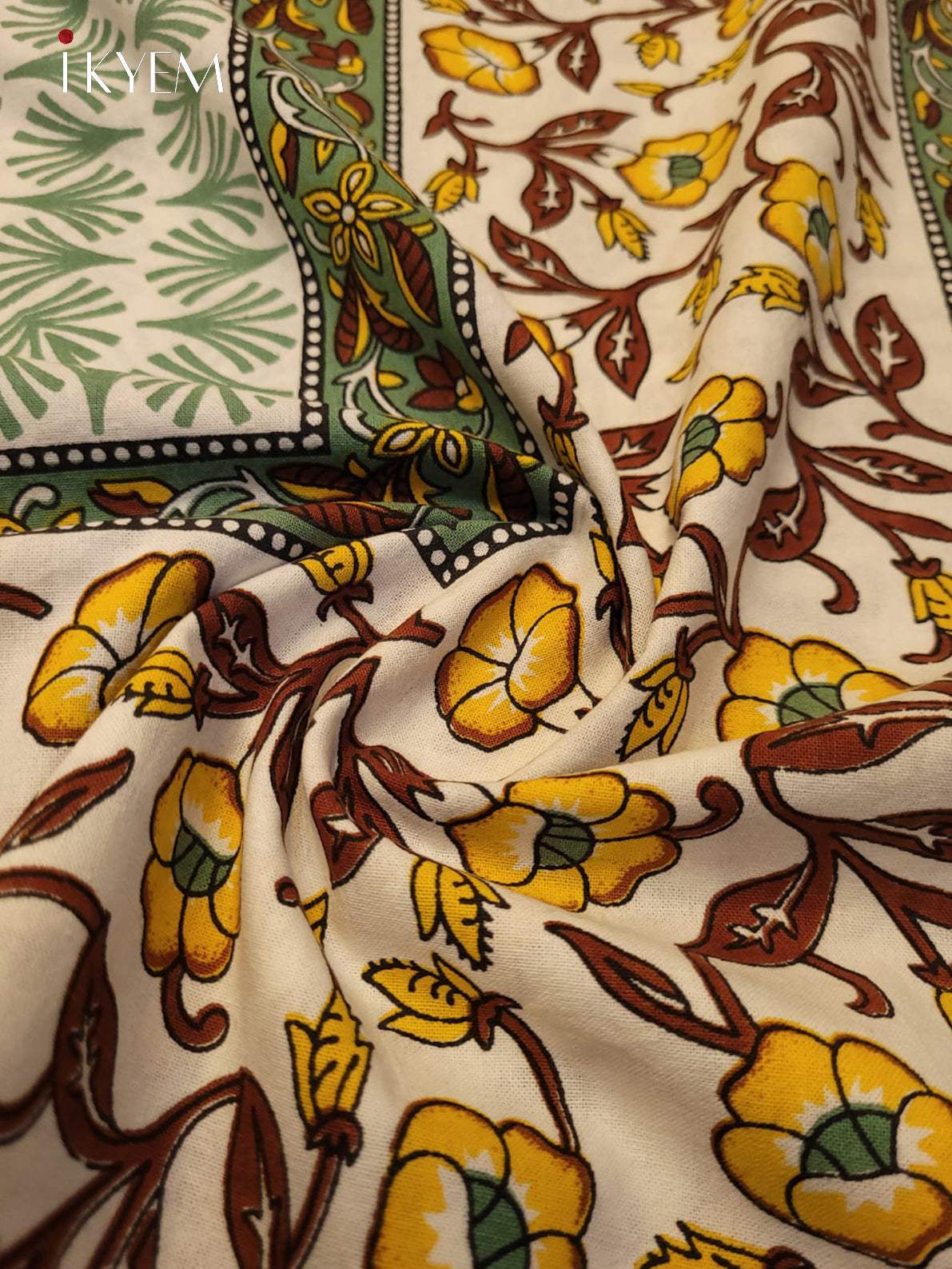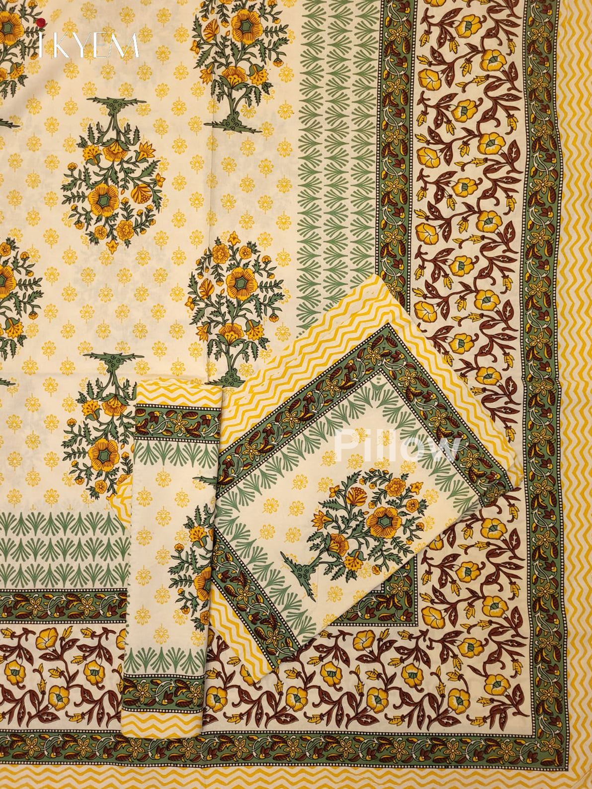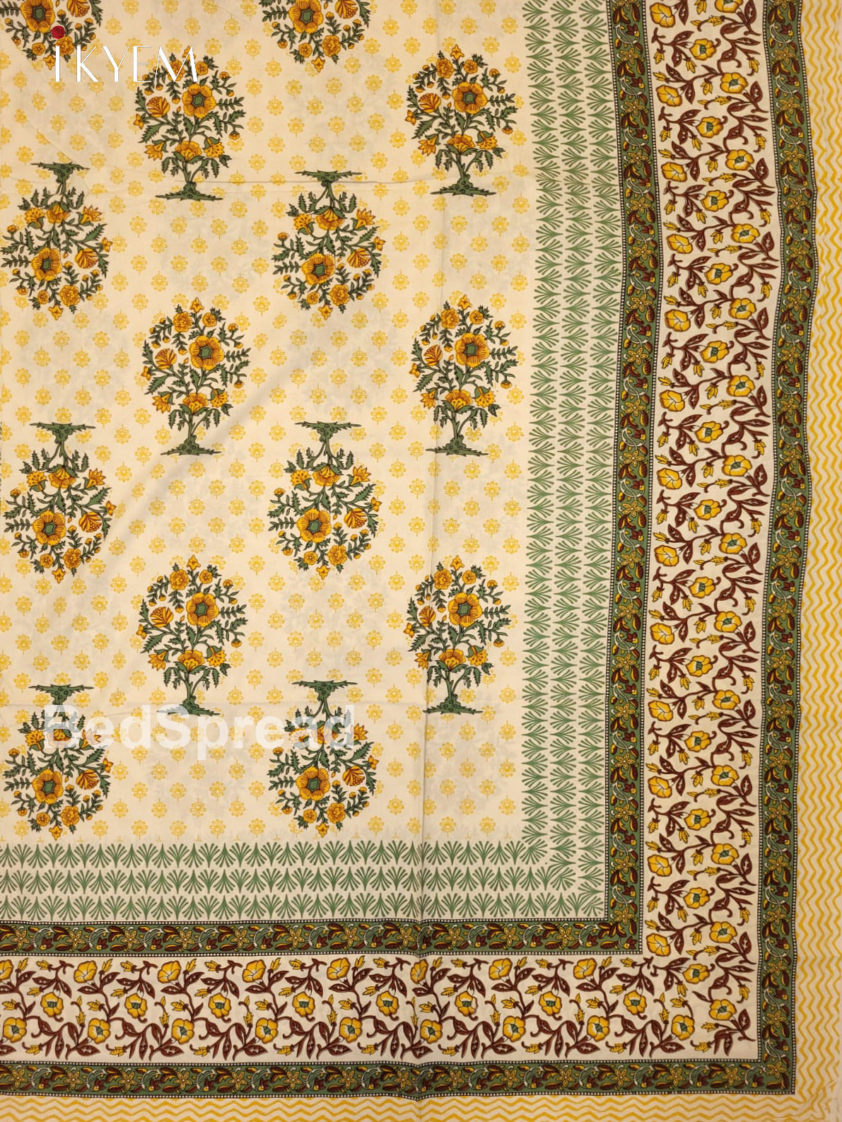 Experience the pinnacle of comfort and elegance with our Cream &  Green  Jaipuri Printed Bedspread, complete with two matching pillow covers. Adorned with stunning floral designs and vibrant hues, this bedspread is crafted from high-quality cotton for the ultimate combination of style and coziness