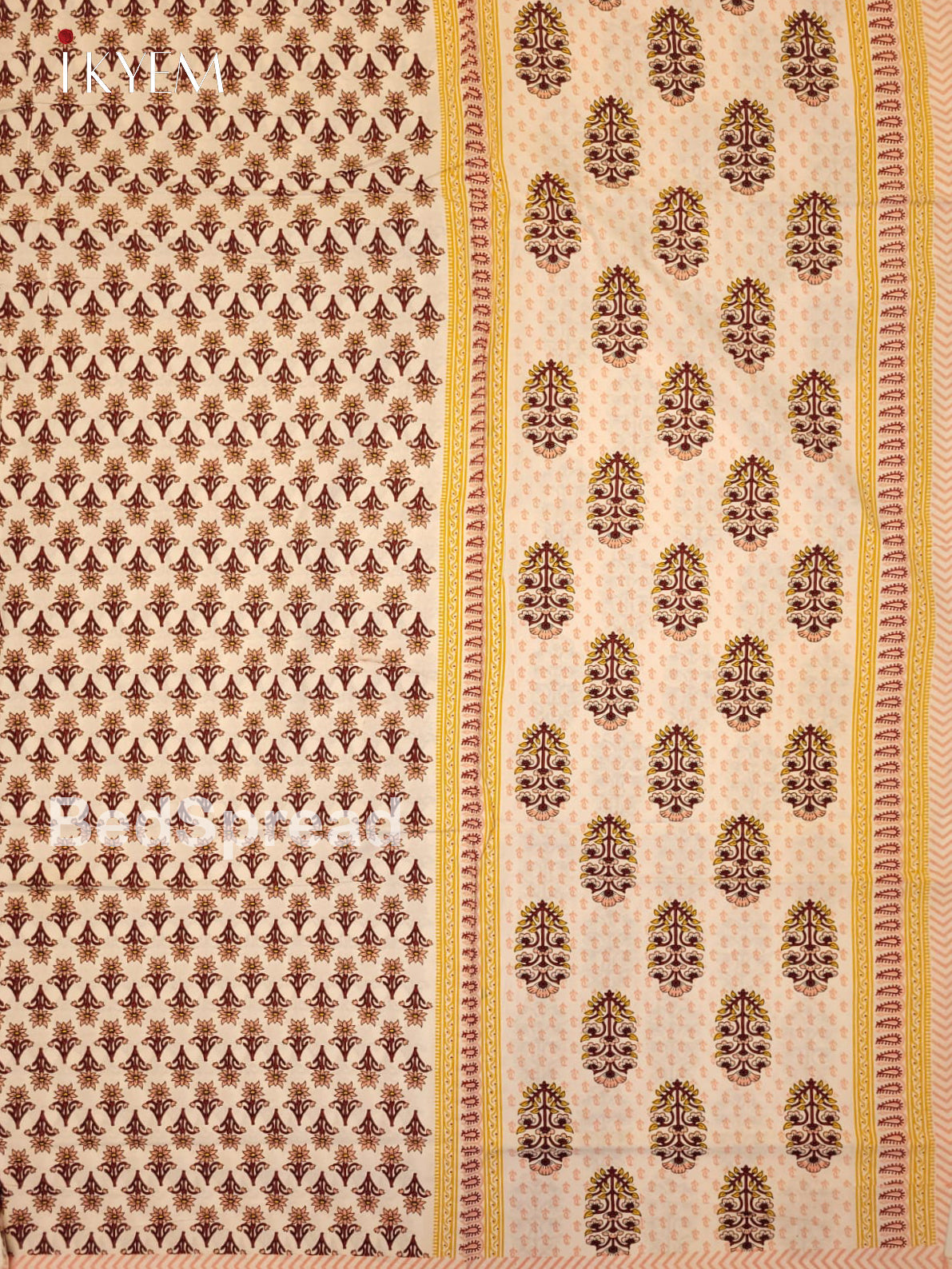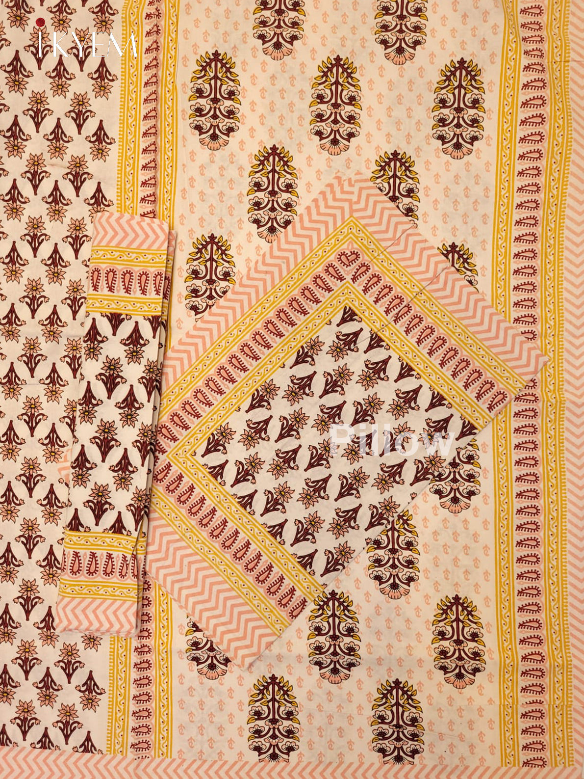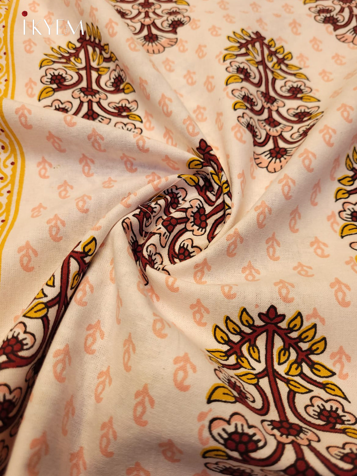 Experience the pinnacle of comfort and elegance with our Cream & Yellow  Jaipuri Printed Bedspread, complete with two matching pillow covers. Adorned with stunning floral designs and vibrant hues, this bedspread is crafted from high-quality cotton for the ultimate combination of style and coziness