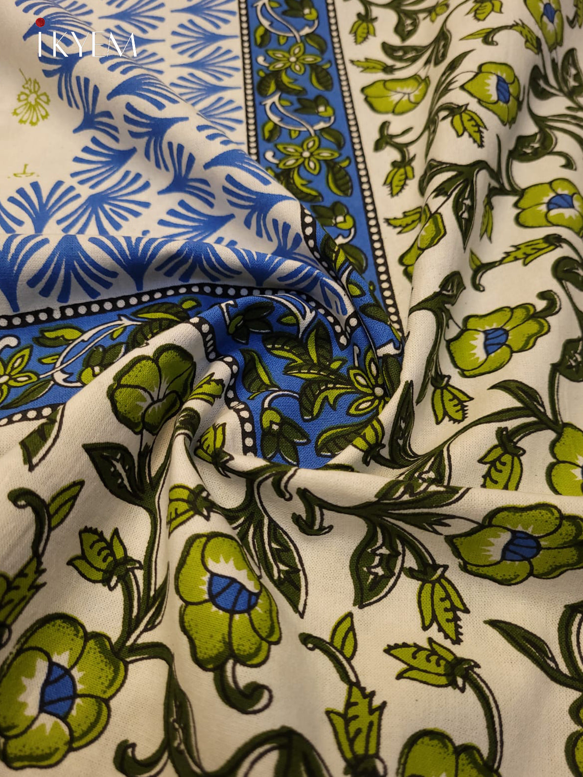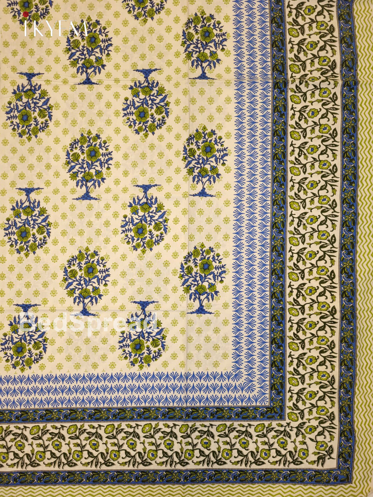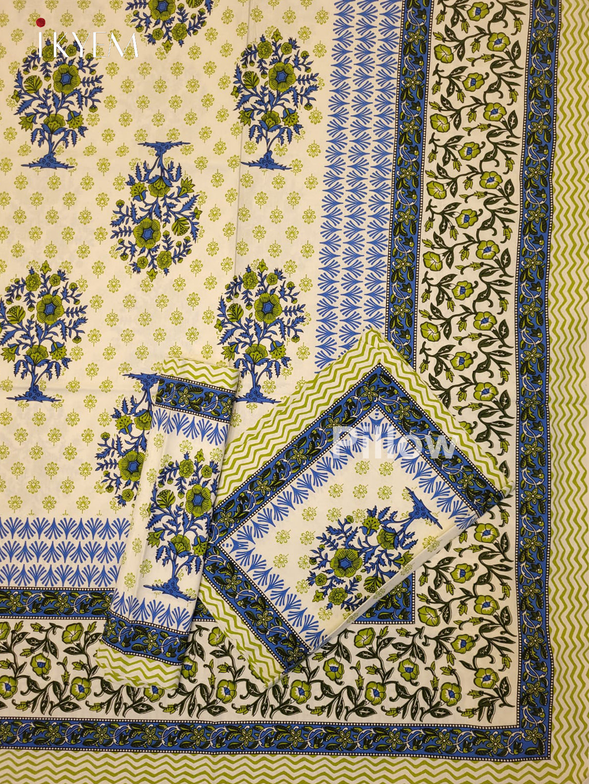 Experience the pinnacle of comfort and elegance with our Cream & Green Jaipuri Printed Bedspread, complete with two matching pillow covers. Adorned with stunning floral designs and vibrant hues, this bedspread is crafted from high-quality cotton for the ultimate combination of style and coziness