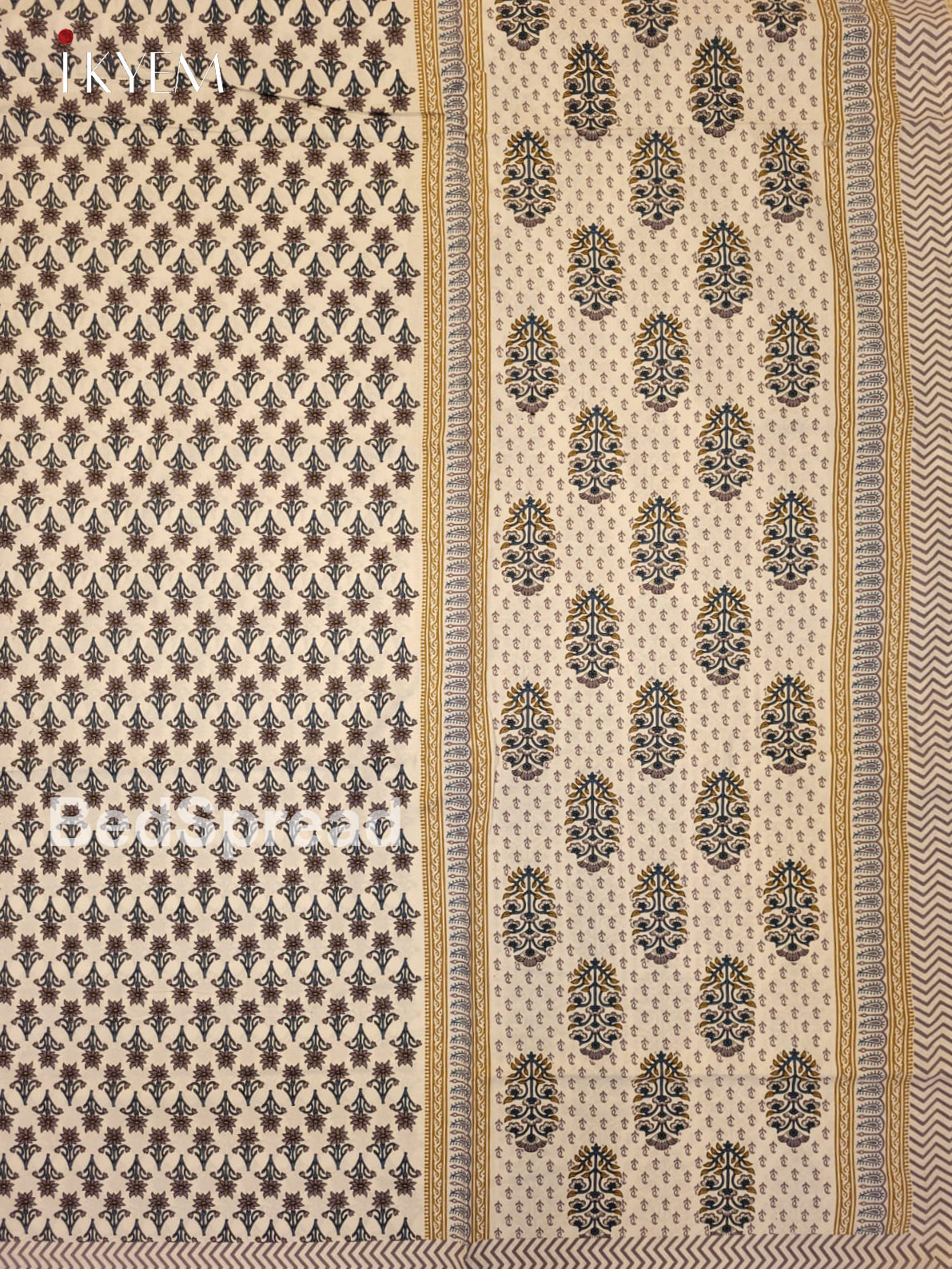 Cream & Blue - Bed Spread
