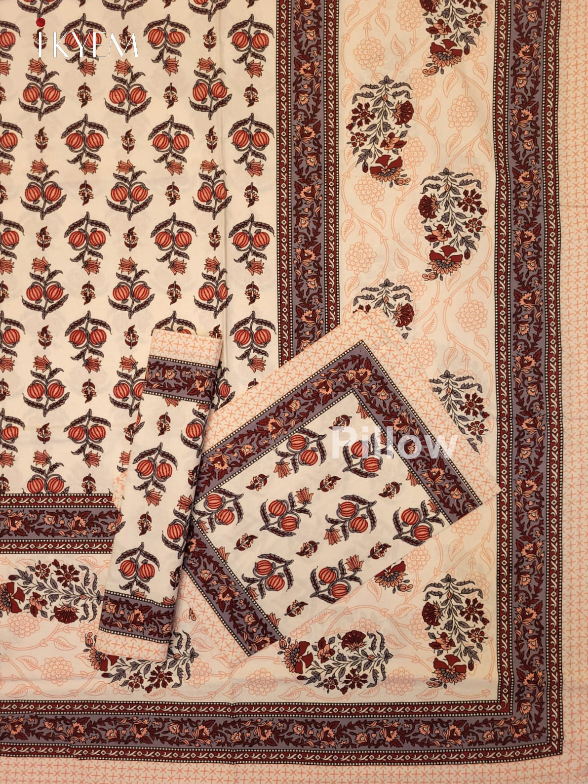 Experience the pinnacle of comfort and elegance with our Pink & Cream Jaipuri Printed Bedspread, complete with two matching pillow covers. Adorned with stunning floral designs and vibrant hues, this bedspread is crafted from high-quality cotton for the ultimate combination of style and coziness