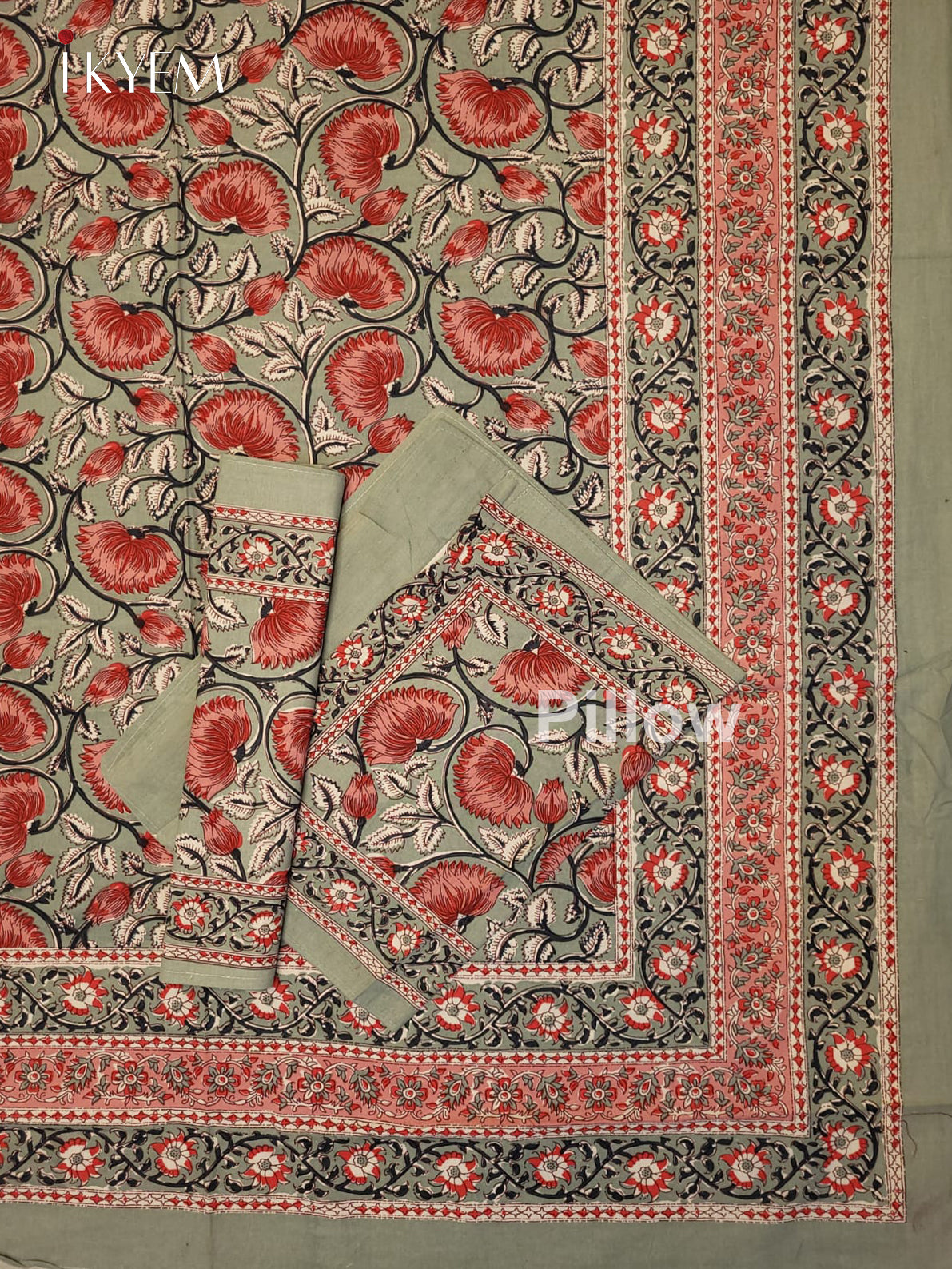 Experience the pinnacle of comfort and elegance with our Grey & Pink Jaipuri Printed Bedspread, complete with two matching pillow covers. Adorned with stunning floral designs and vibrant hues, this bedspread is crafted from high-quality cotton for the ultimate combination of style and coziness