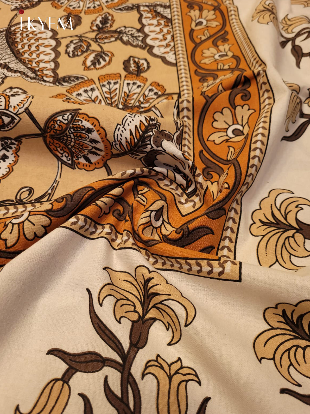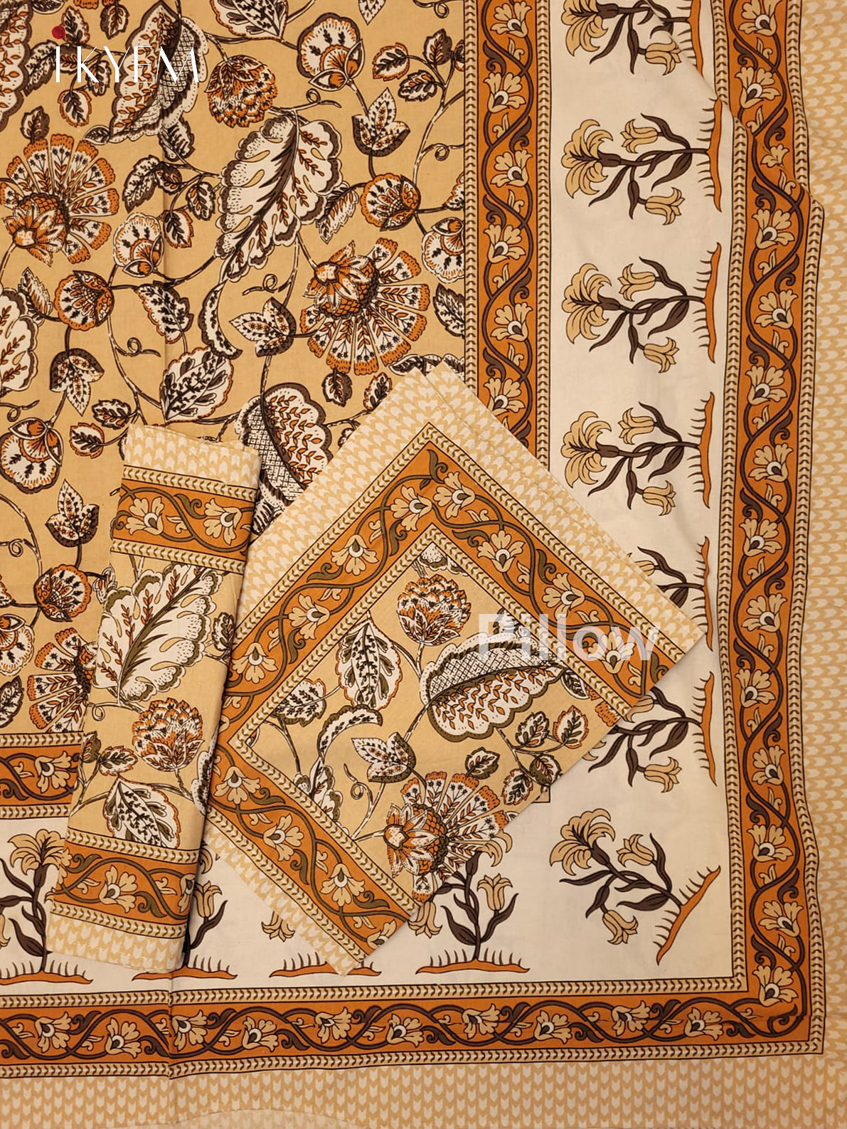 Experience the pinnacle of comfort and elegance with our Cream & Yellow Jaipuri Printed Bedspread, complete with two matching pillow covers. Adorned with stunning floral designs and vibrant hues, this bedspread is crafted from high-quality cotton for the ultimate combination of style and coziness