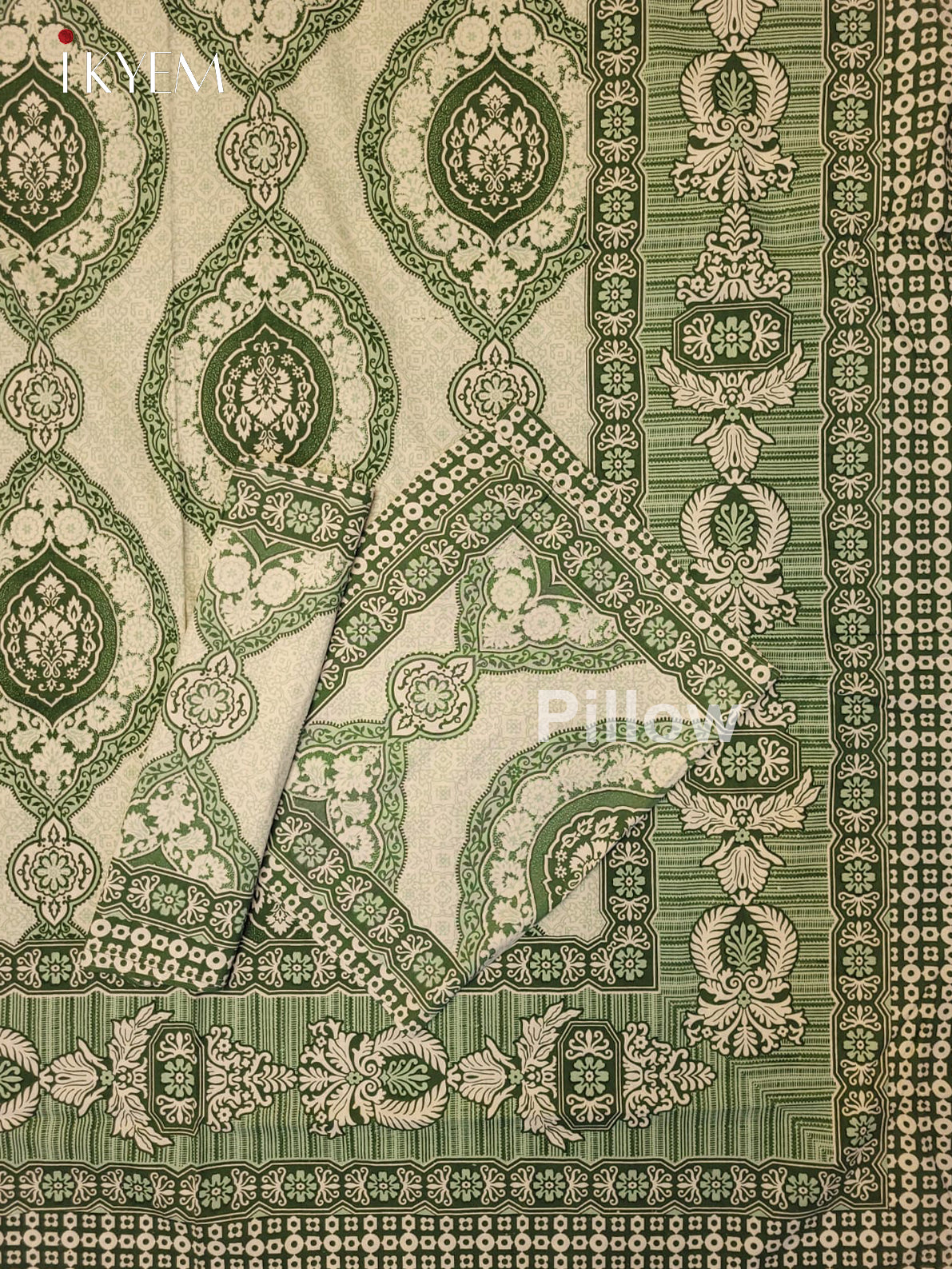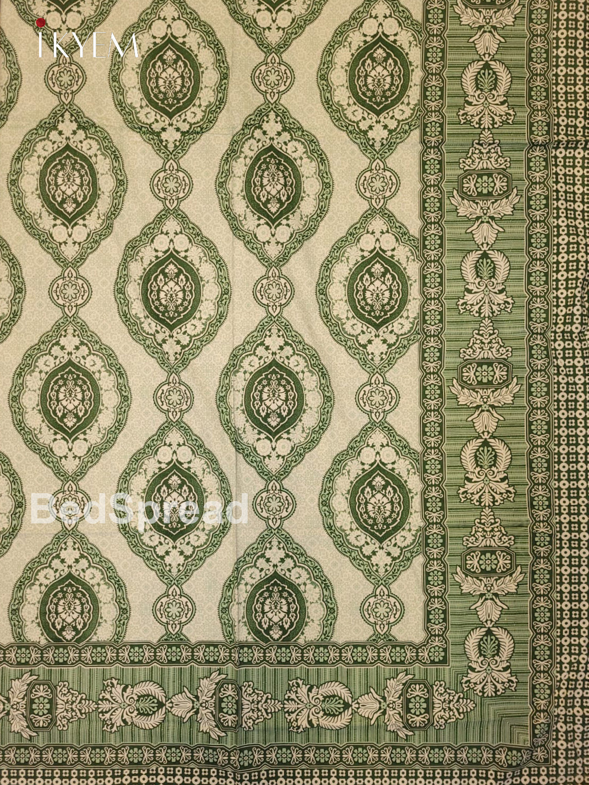 Experience the pinnacle of comfort and elegance with our  Cream & Green Jaipuri Printed Bedspread, complete with two matching pillow covers. Adorned with stunning floral designs and vibrant hues, this bedspread is crafted from high-quality cotton for the ultimate combination of style and coziness