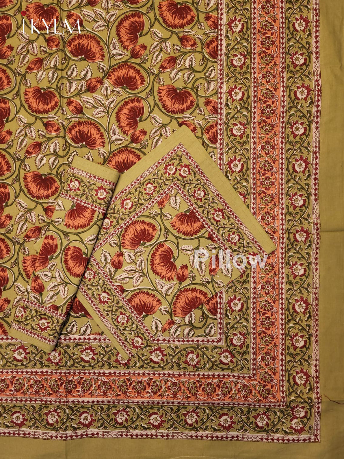 Experience the pinnacle of comfort and elegance with our Green & Red Jaipuri Printed Bedspread, complete with two matching pillow covers. Adorned with stunning floral designs and vibrant hues, this bedspread is crafted from high-quality cotton for the ultimate combination of style and coziness