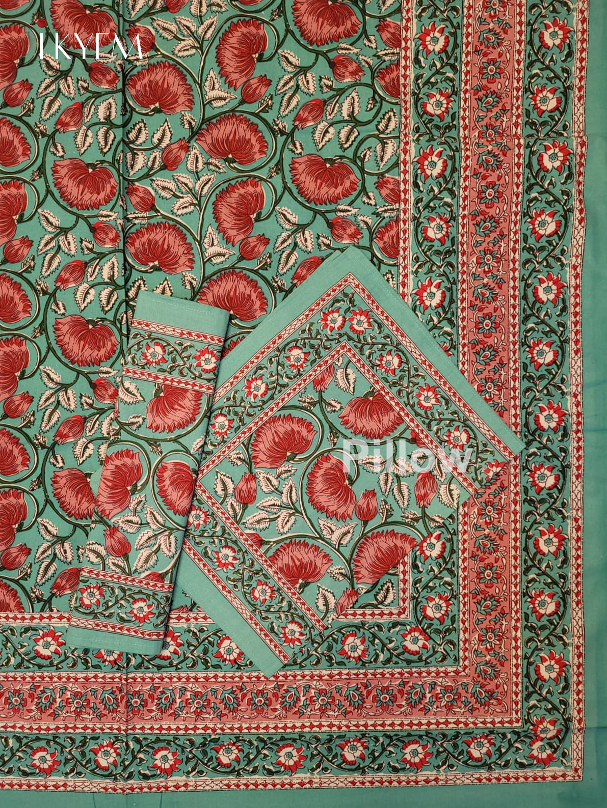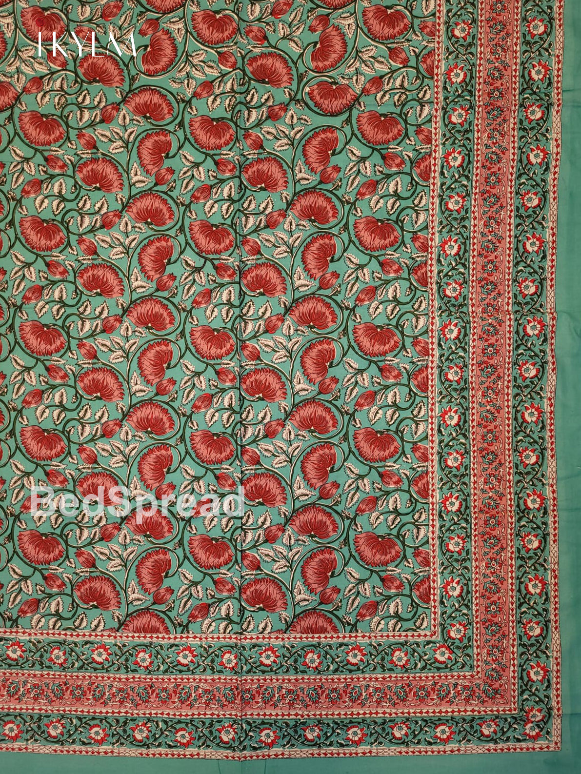 Experience the pinnacle of comfort and elegance with our Green & Red Jaipuri Printed Bedspread, complete with two matching pillow covers. Adorned with stunning floral designs and vibrant hues, this bedspread is crafted from high-quality cotton for the ultimate combination of style and coziness