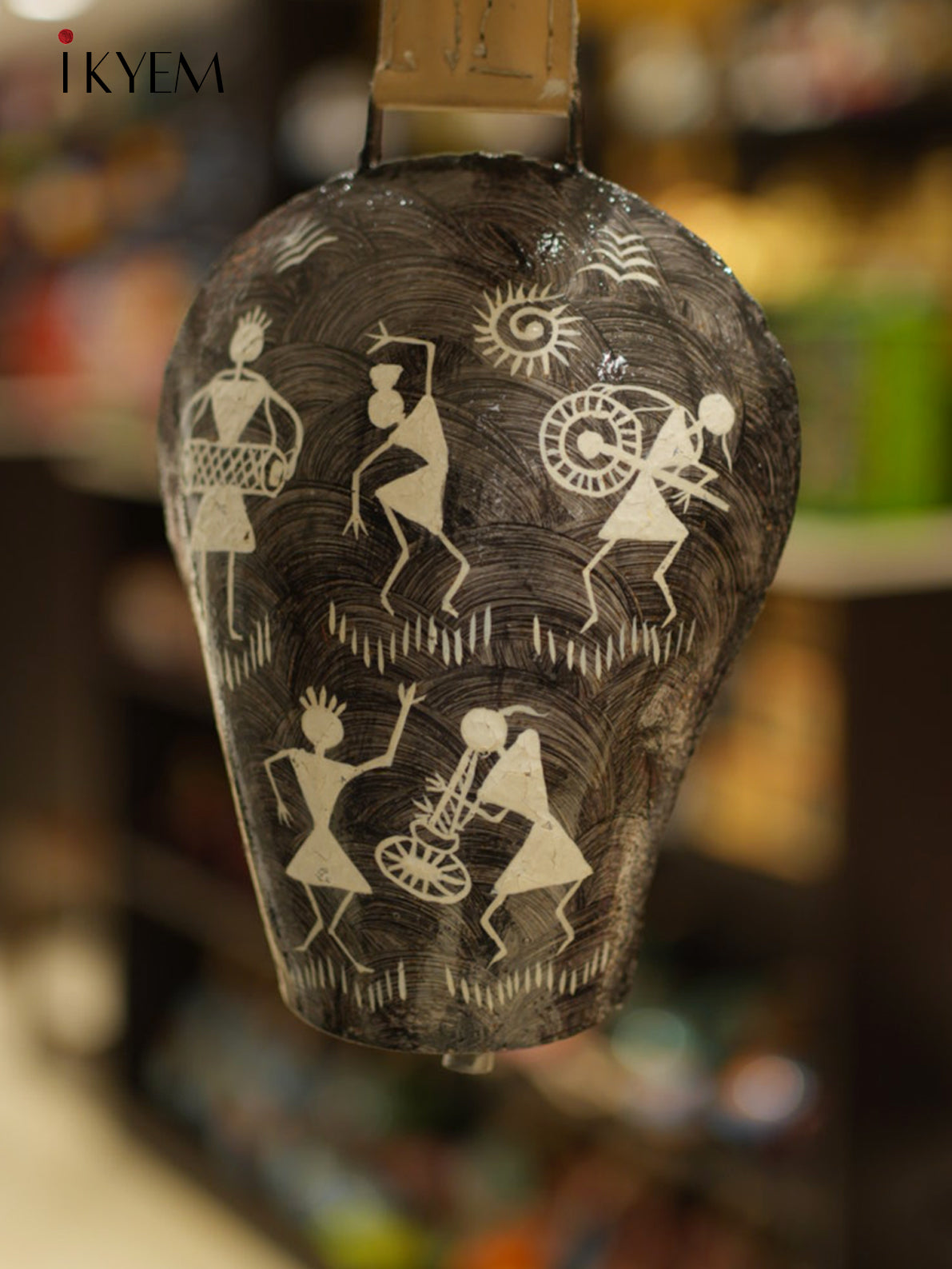 Enhance your space with this unique cow bell, beautifully adorned with traditional Worli paint. Handcrafted by skilled artisans, each bell features intricate designs and vibrant colors that embody the essence of Indian folk art. Perfect for adding a touch of cultural elegance to your home or garde