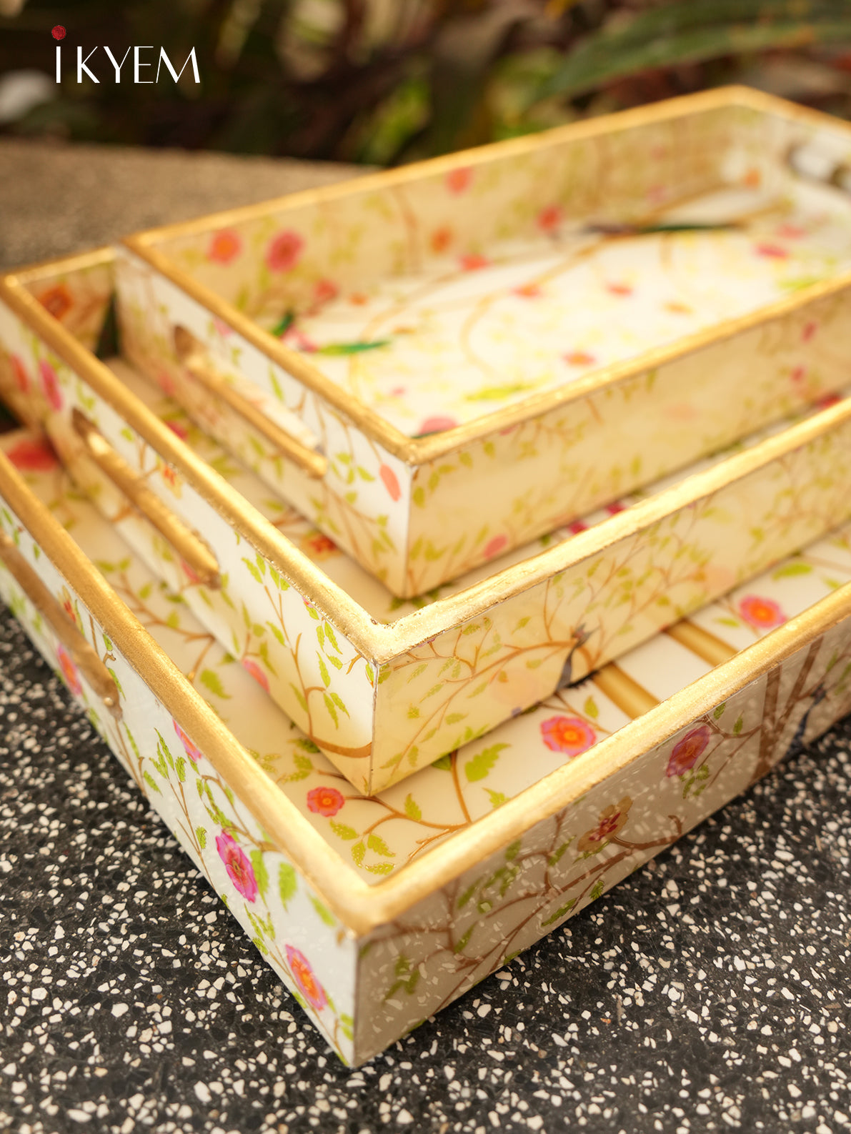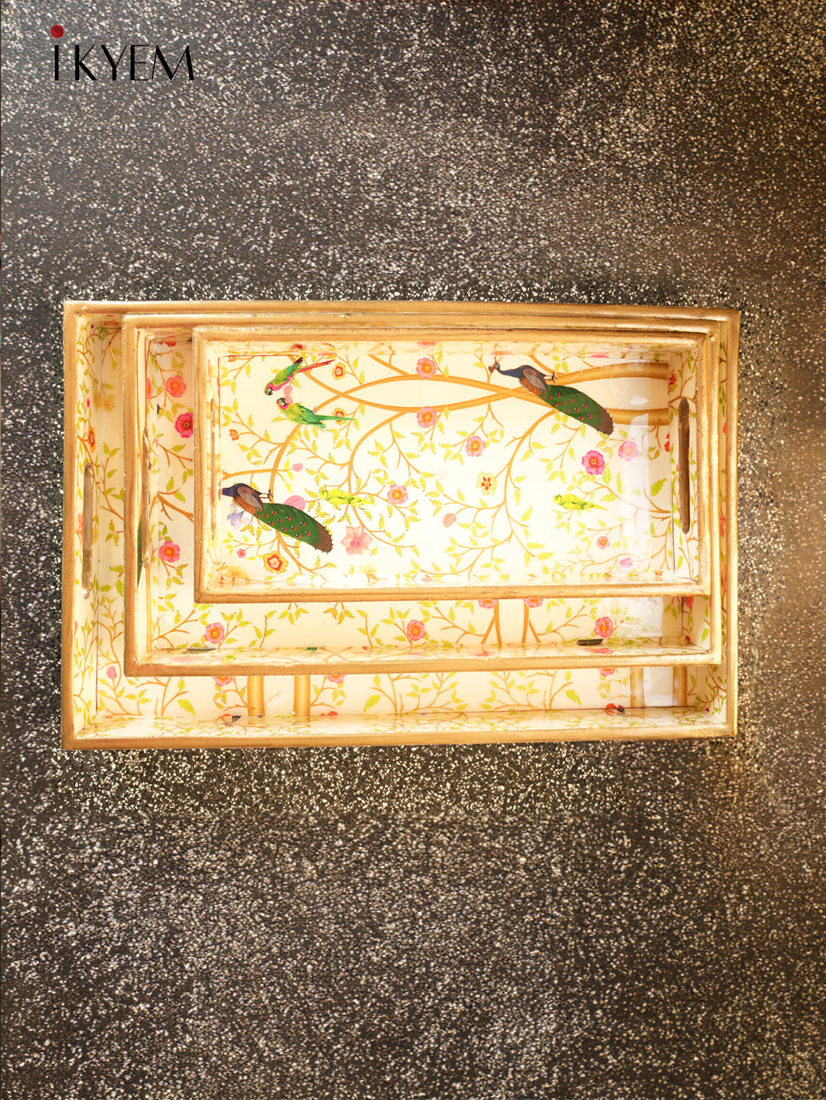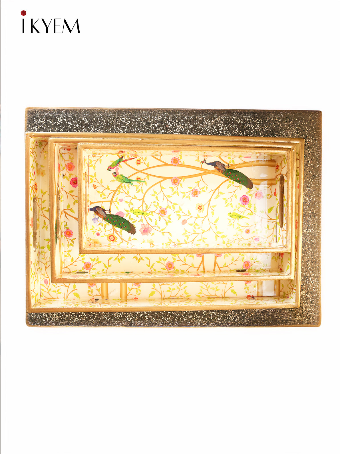 Elevate your serving style with this acrylic printed tray set, featuring vibrant and contemporary designs. Durable and lightweight, these trays are perfect for serving drinks, snacks, or displaying decorative items. The glossy finish ensures easy cleaning and adds a touch of elegance to any occasion.